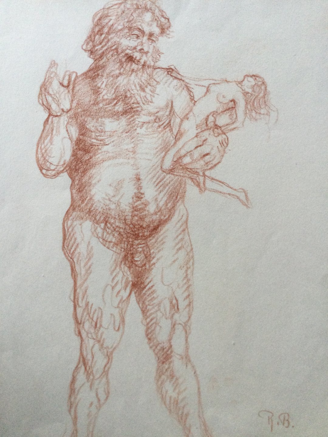 Tegning af Robert Büchtger - trold med nøgen kvinde