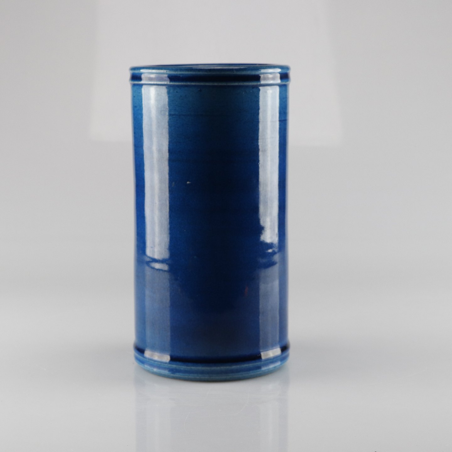 Cylinderformet vase i keramik med blå glasur no 250-18