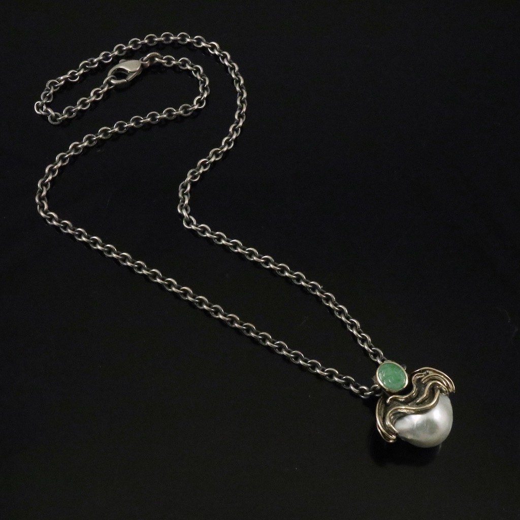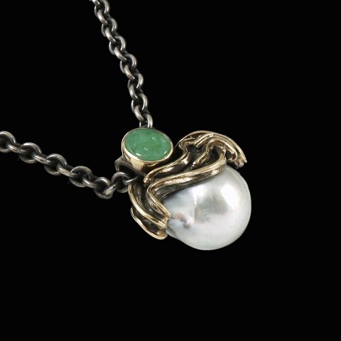 Vilhelm Holmstrup. Vedhæng i sterlingsølv med 18k guld, Perle og Jade.