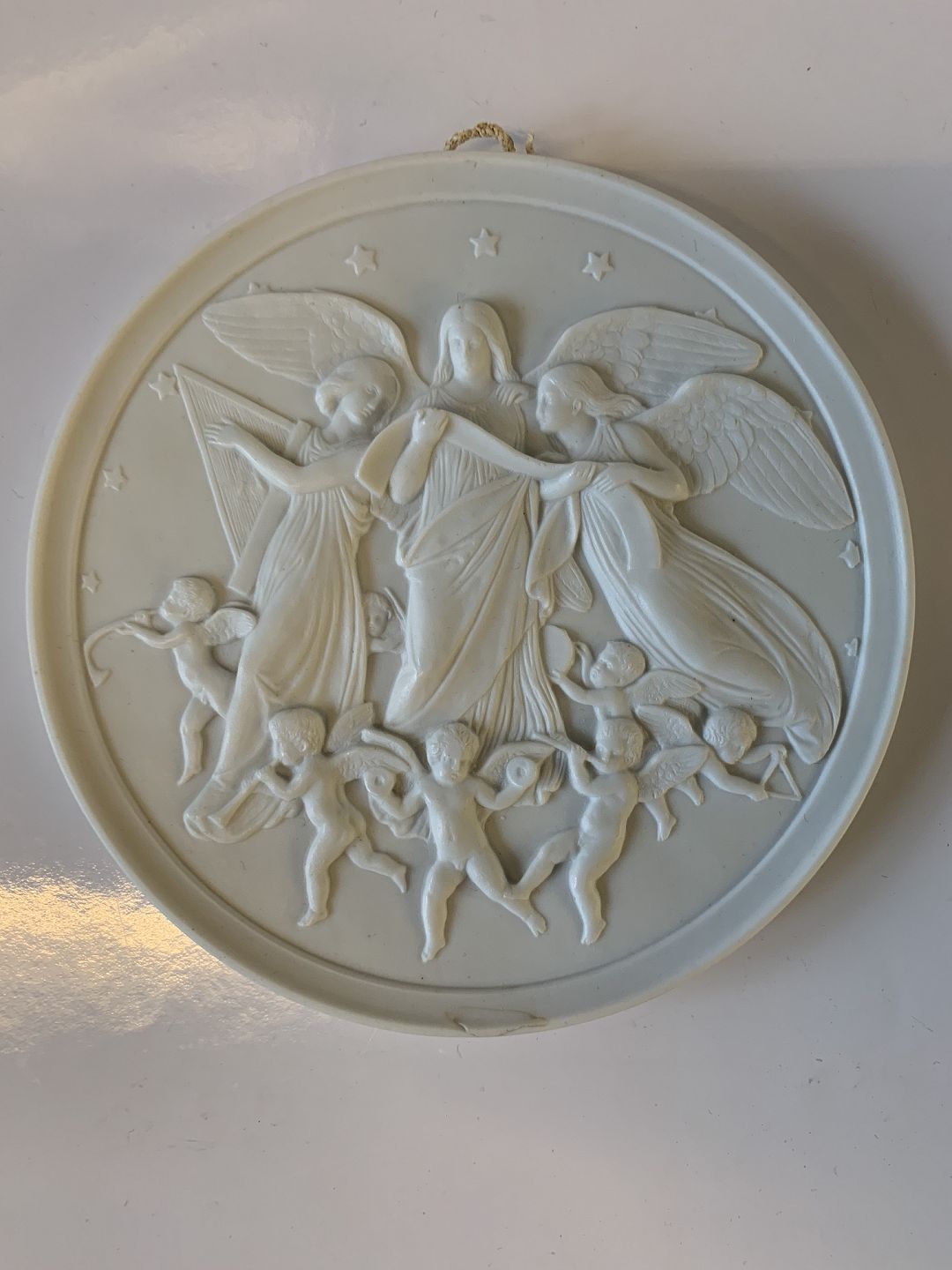 Bing & Grøndahl Bisquit platte af Thorvaldsen kaldet Juleglæde i Himlen.