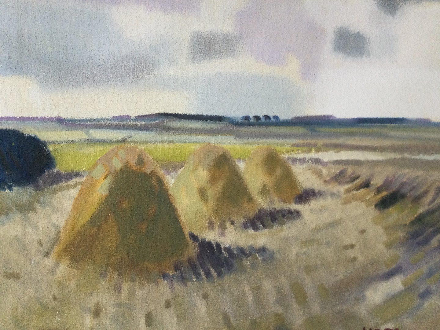 Maleri af Knud Horup - Høstparti med høstakke.