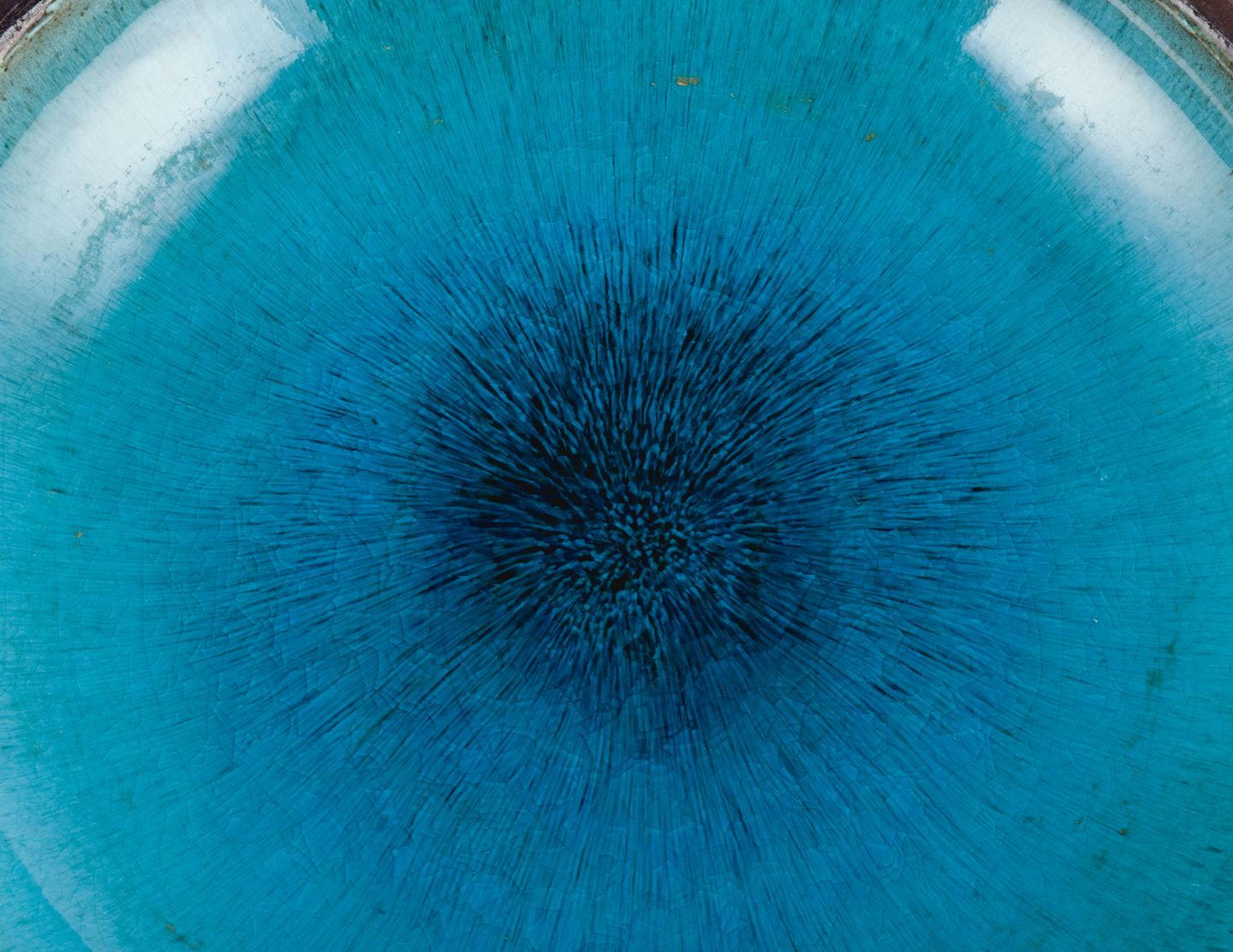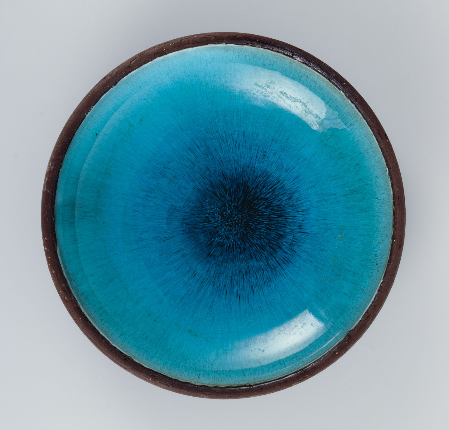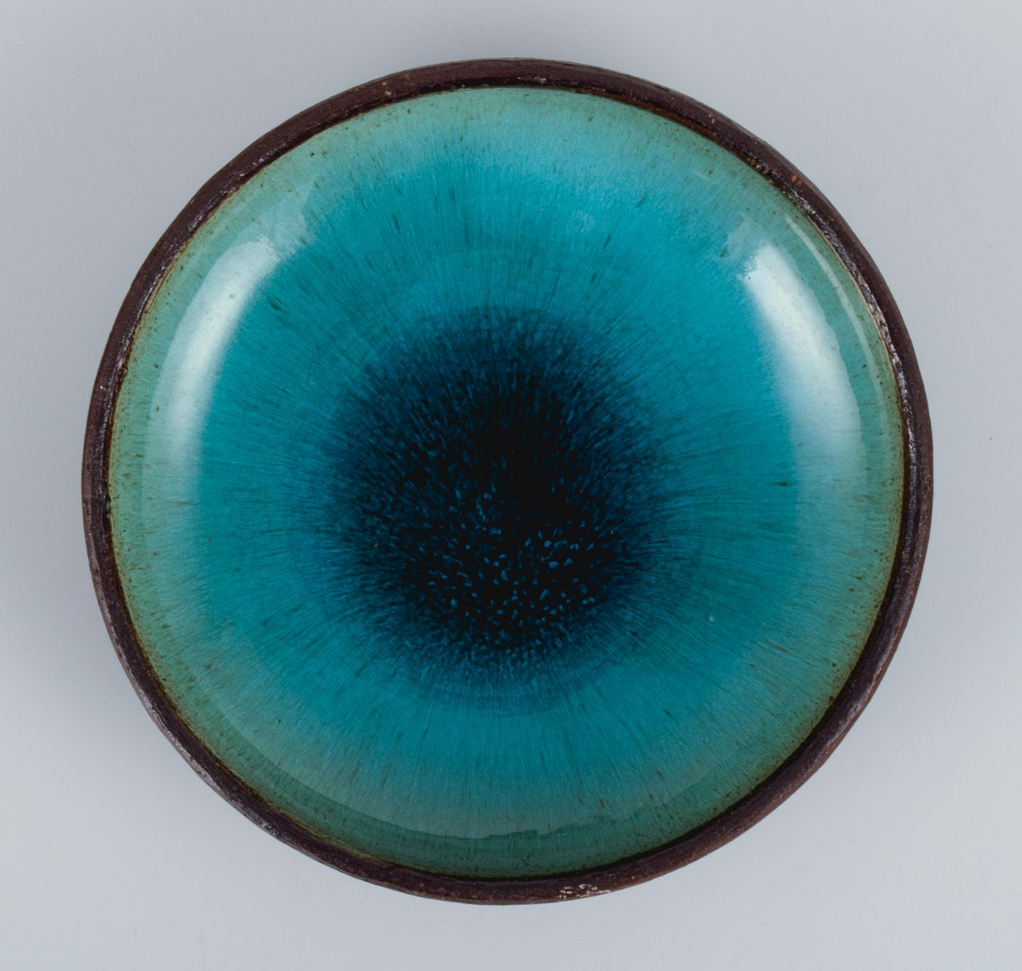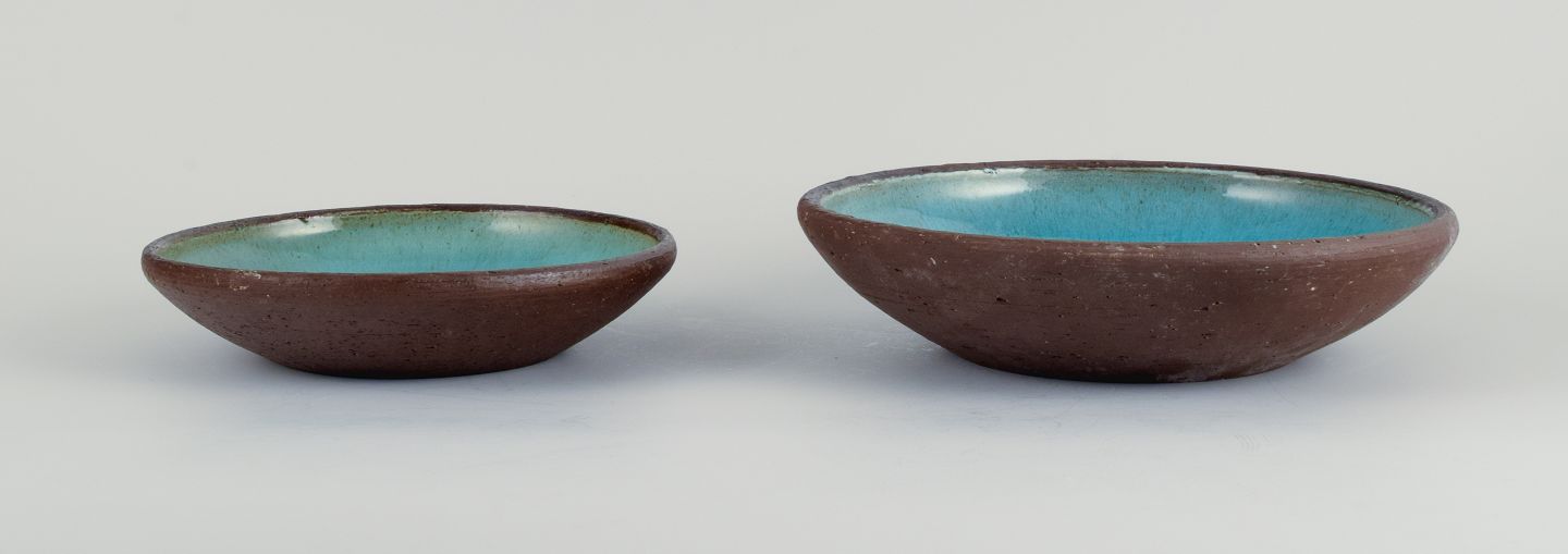 Two large retro unique ceramic bowls with glaze in turquoise tones.