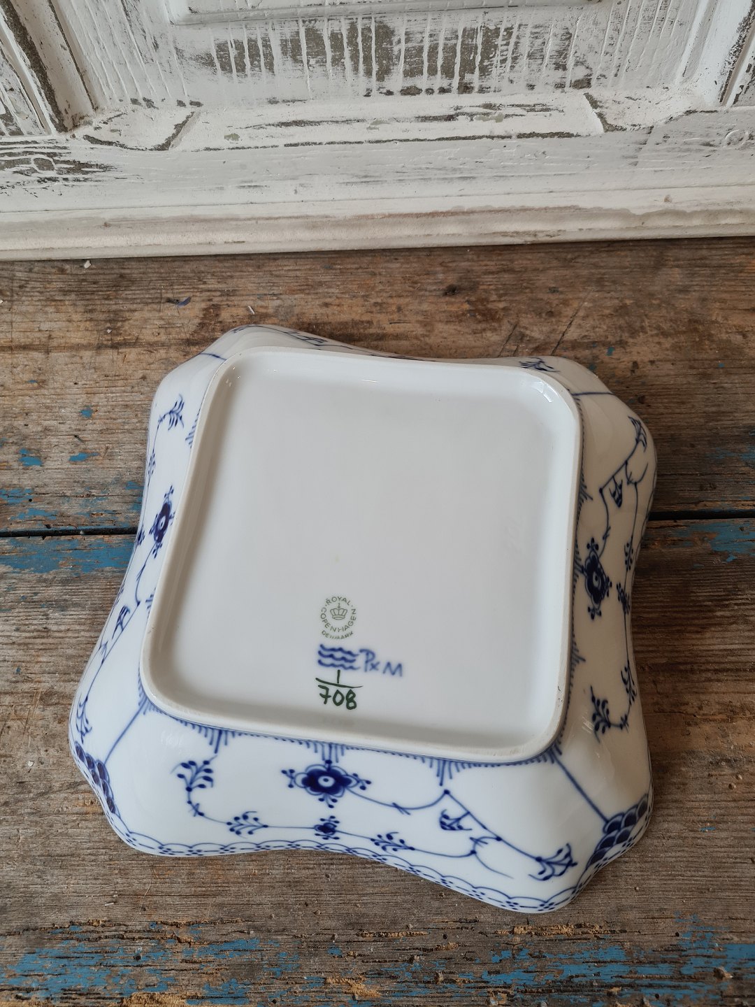 Royal Copenhagen Musselmalet halvblonde firkantet skål