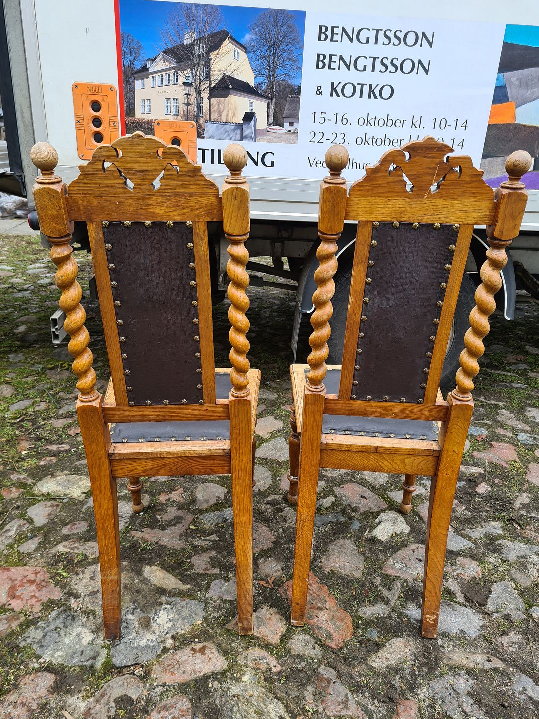 2 stole i egetræ udført med nappa.