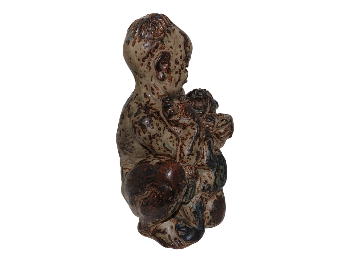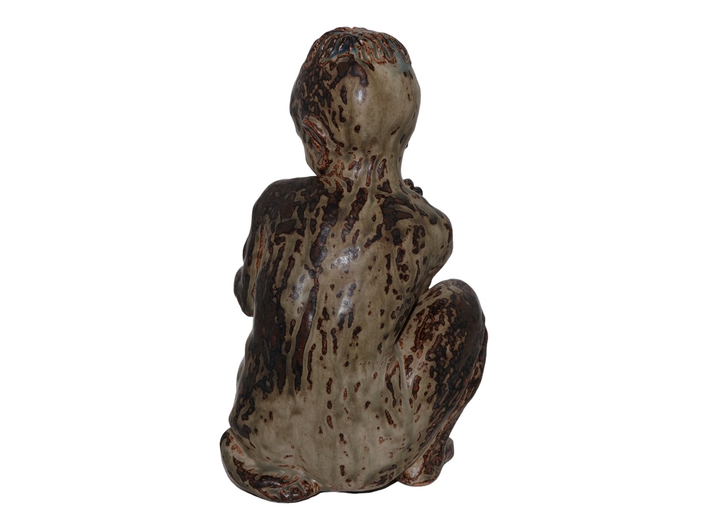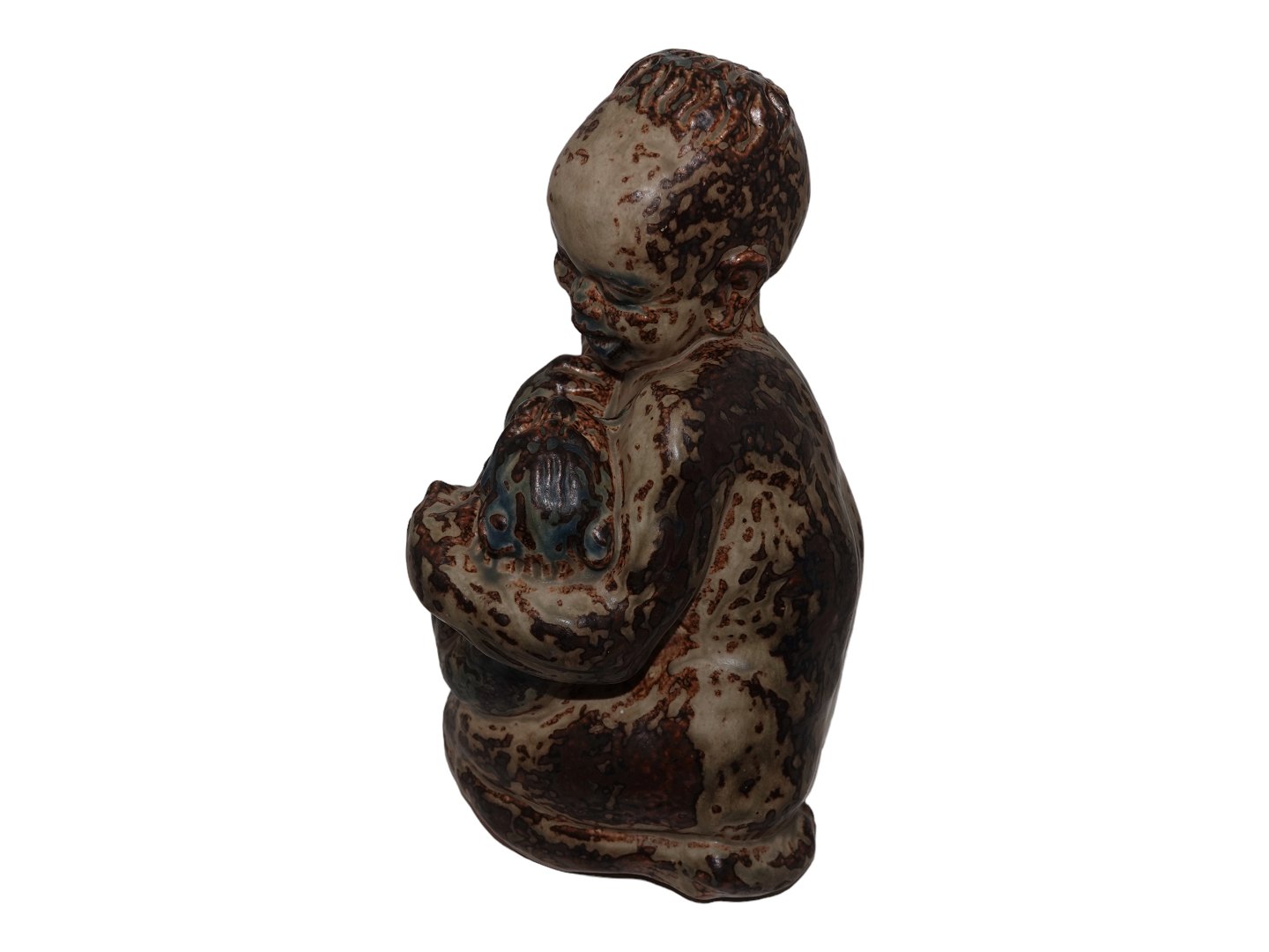 Large Royal Copenhagen Stoneware figurine, boy with cat by Knud Kyhn.