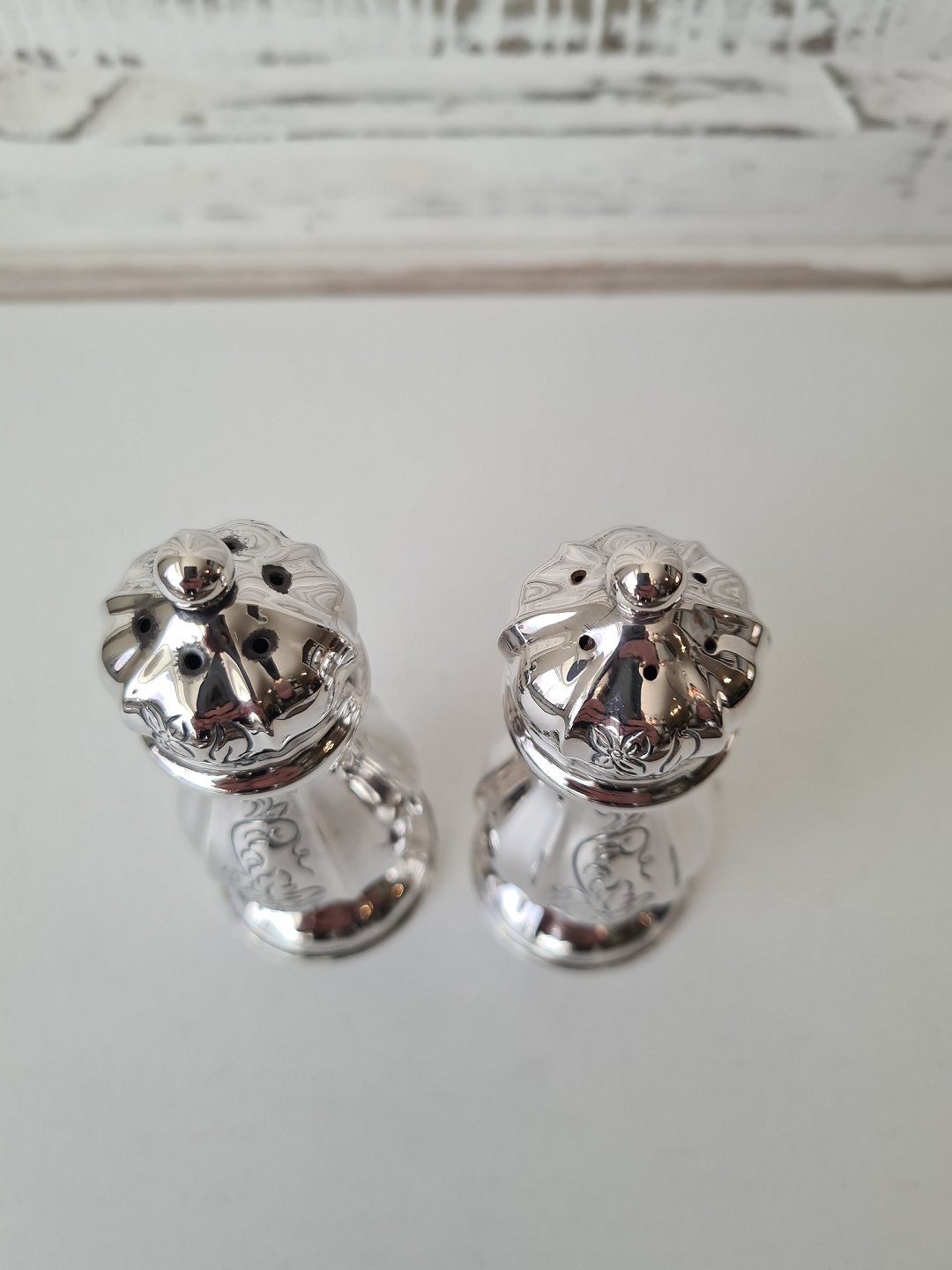 Salt og pebersæt i rokoko facon udført i sterlingsølv