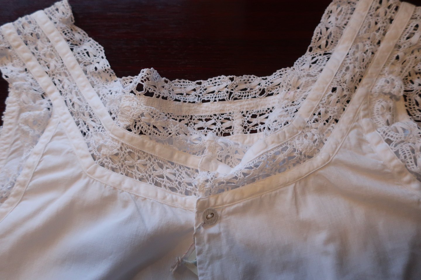 Good old blouse/top without sleeves and with beautiful handcraft incl. signature