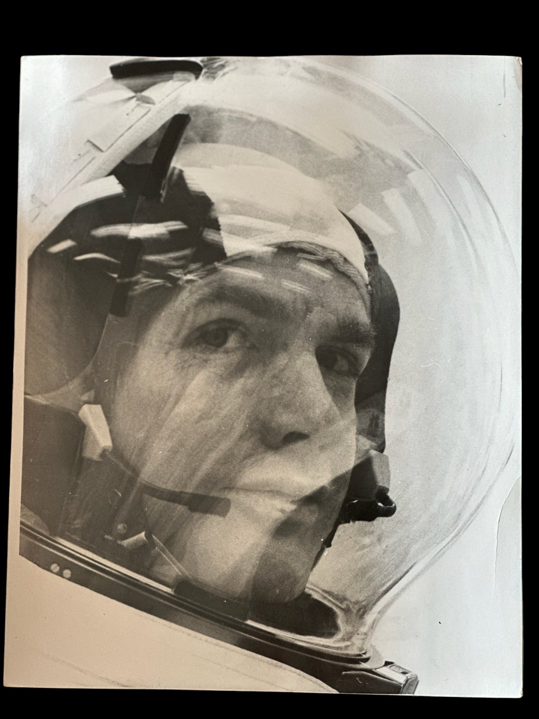 Original black and white, vintage, gelatin silver, press photo of NASA astronaut and command pilot on the Apollo 9 lunar mission David R. Scott (1932- ). The photograph was taken in 1969, where Apollo 9 was sent into space.