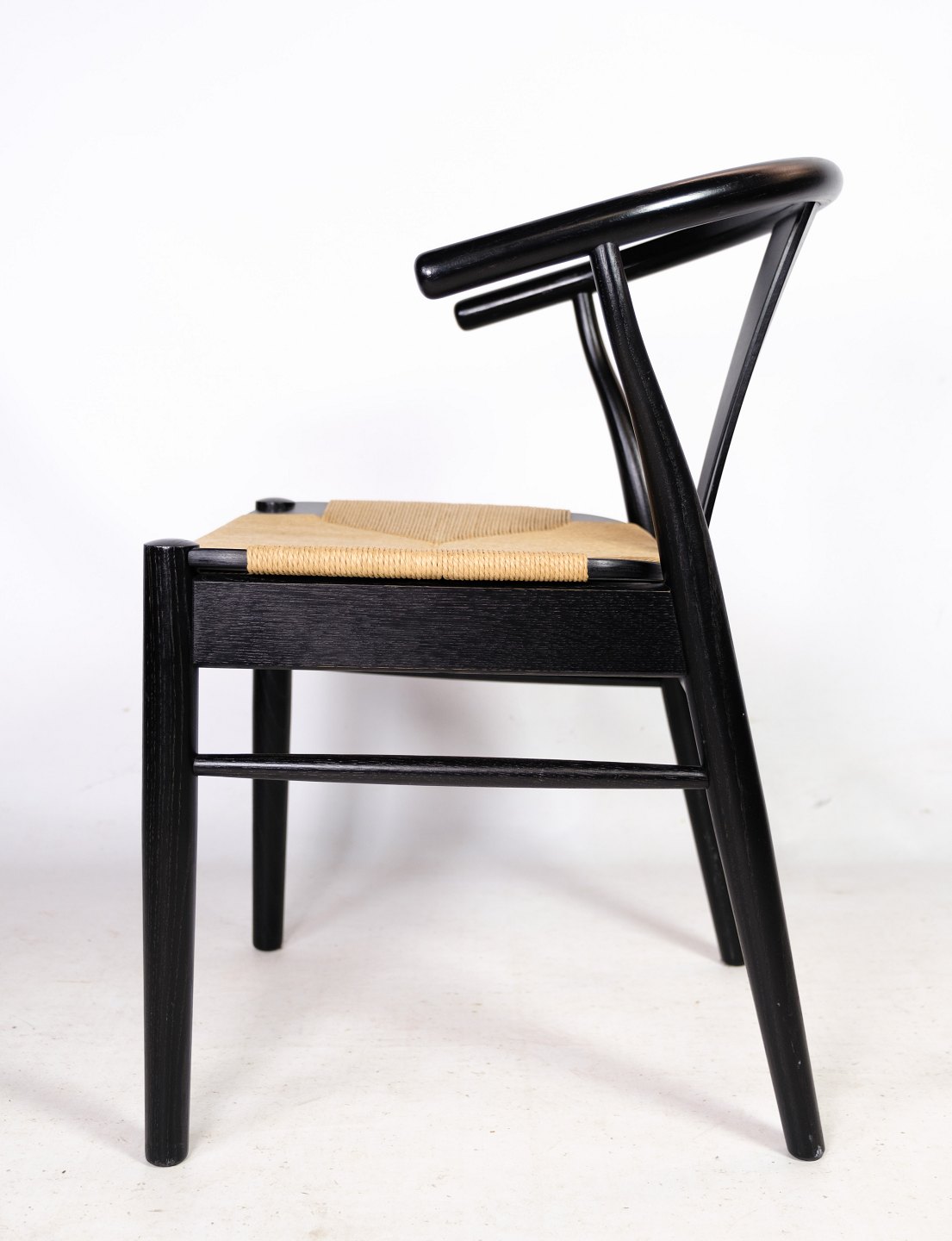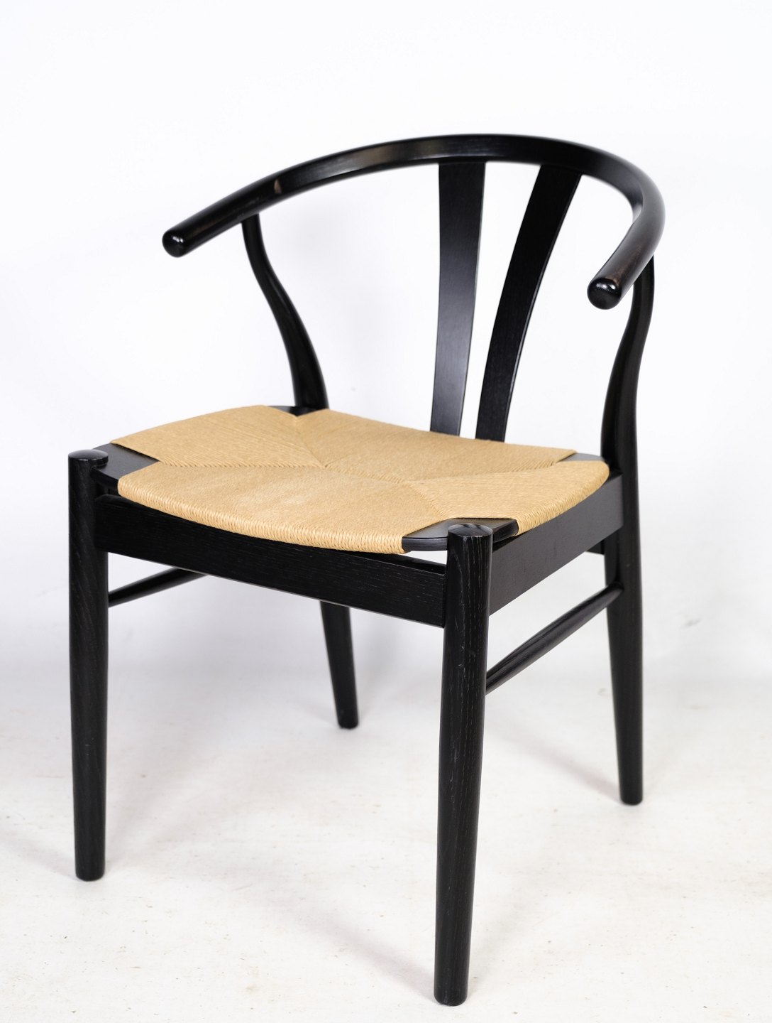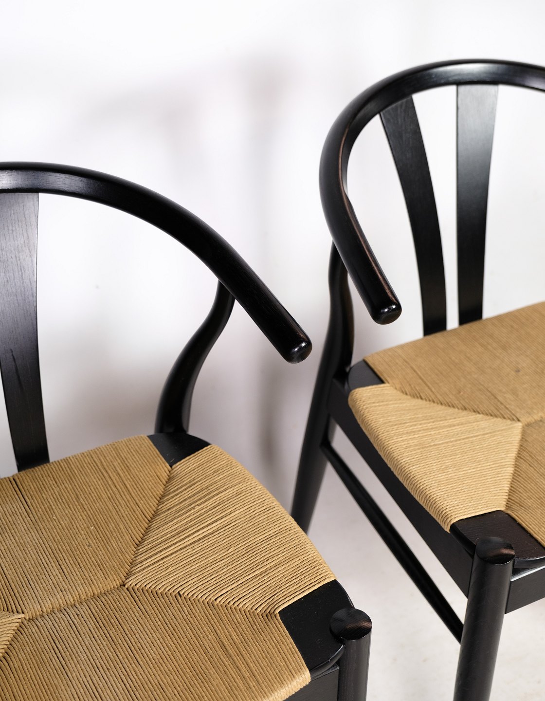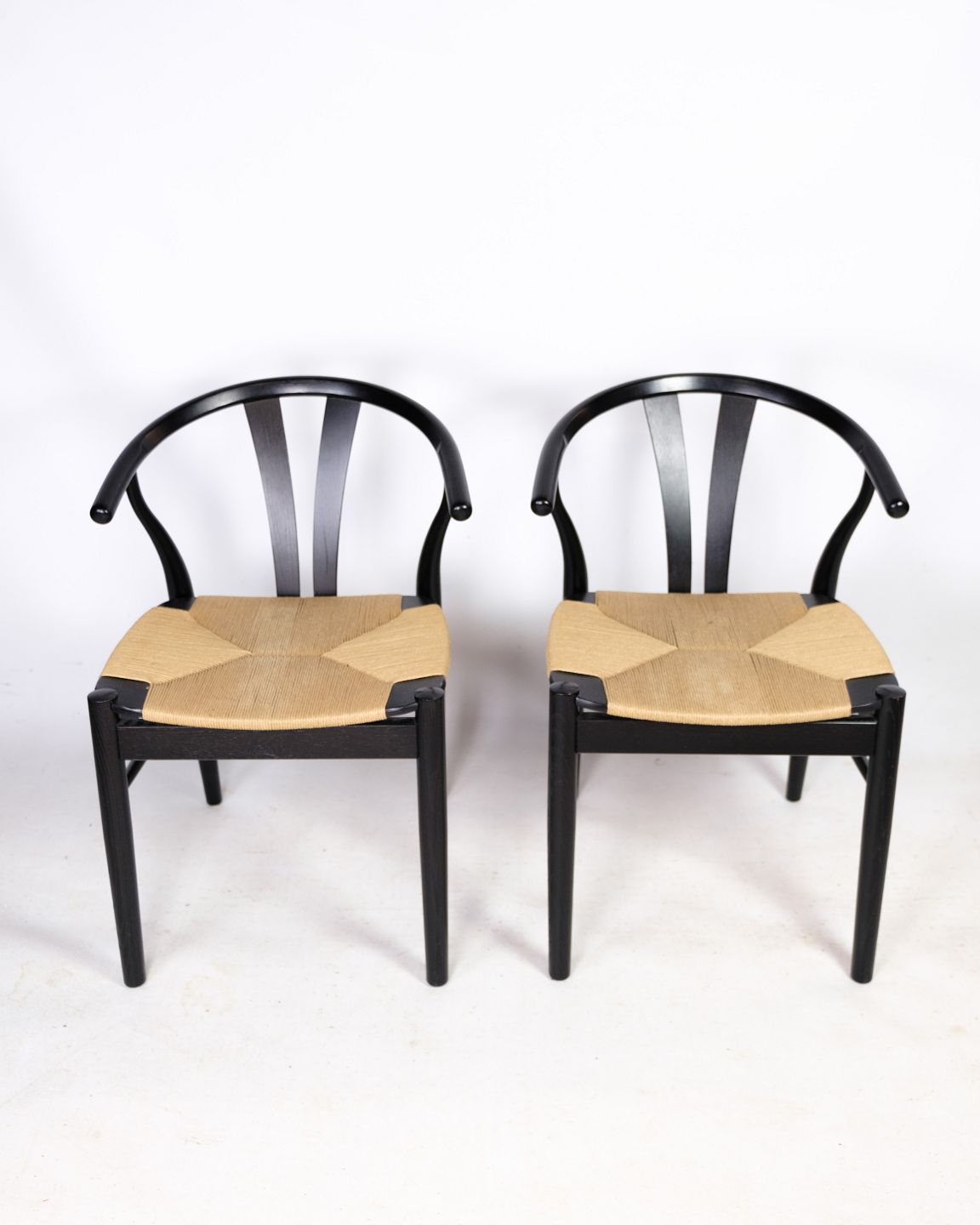 Et par stole i nordisk design med natur fletsæde lavet i sort lakeret bøgetræ af Findahl Møbelfabrik. Begge stole står i meget flot stand.