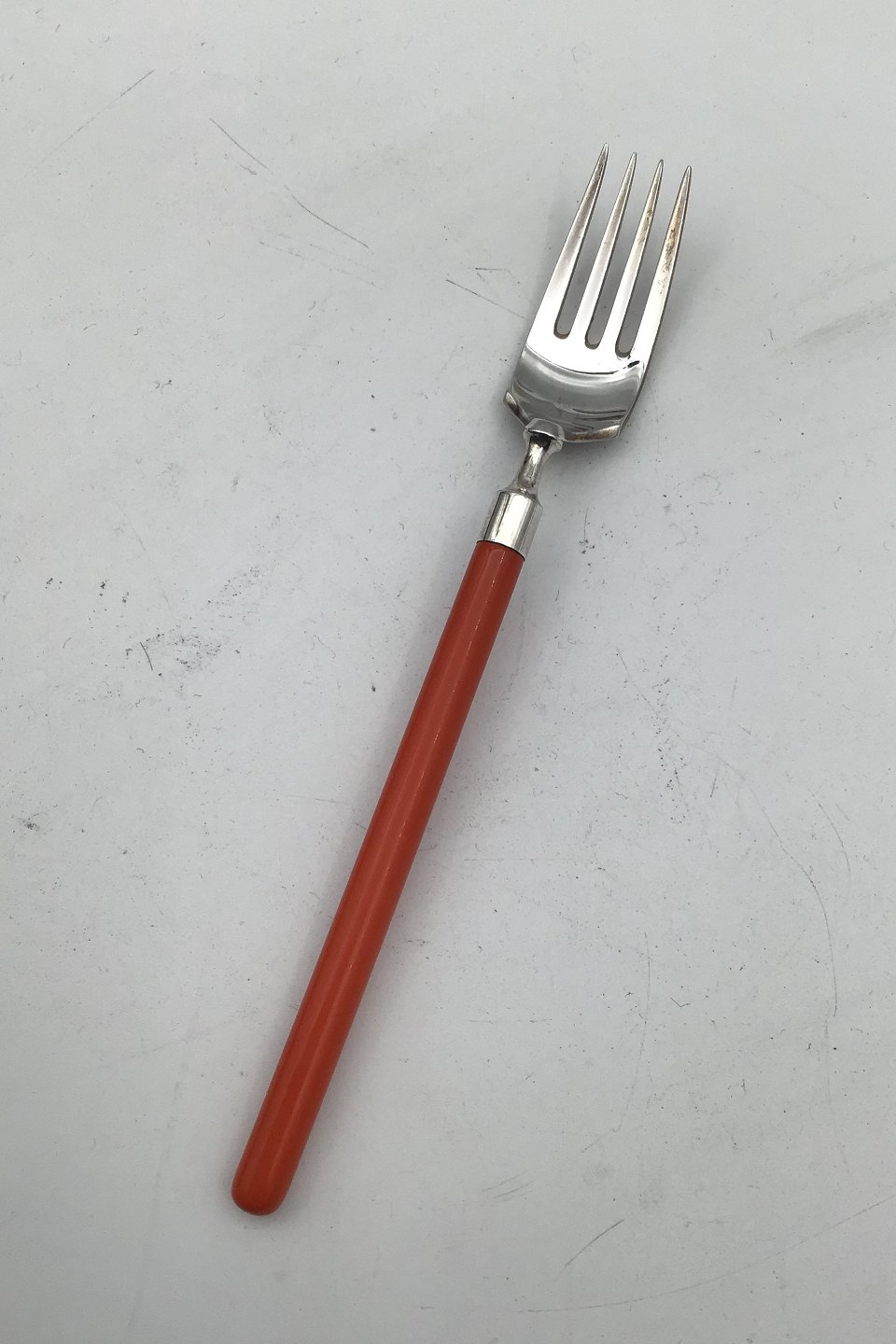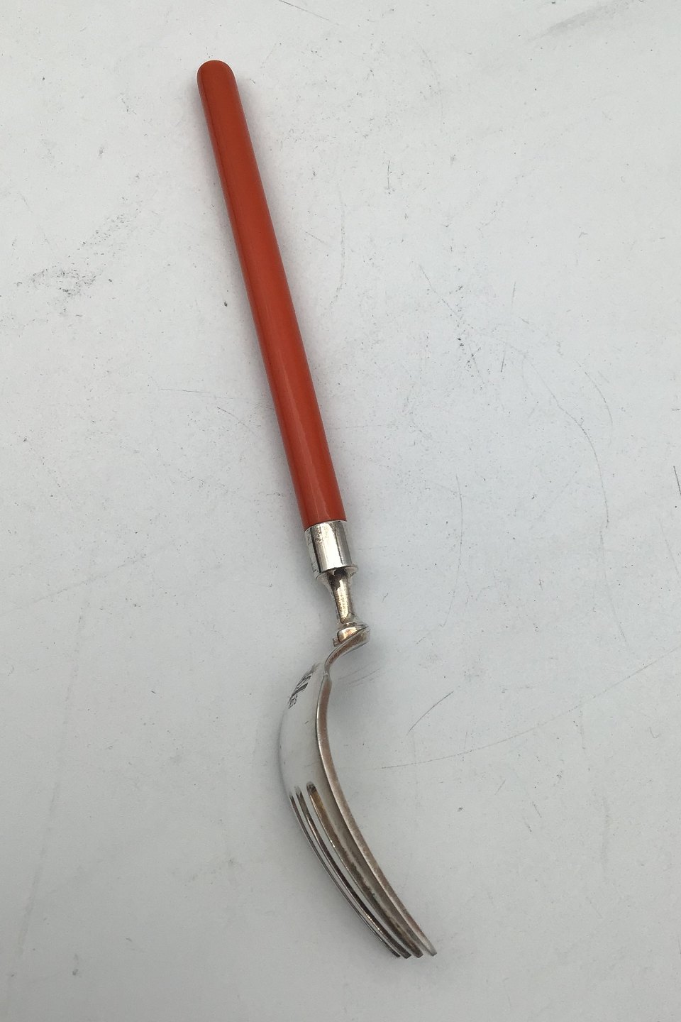 Hans Hansen Sølv Amalie Barnegaffel Orange Emalje