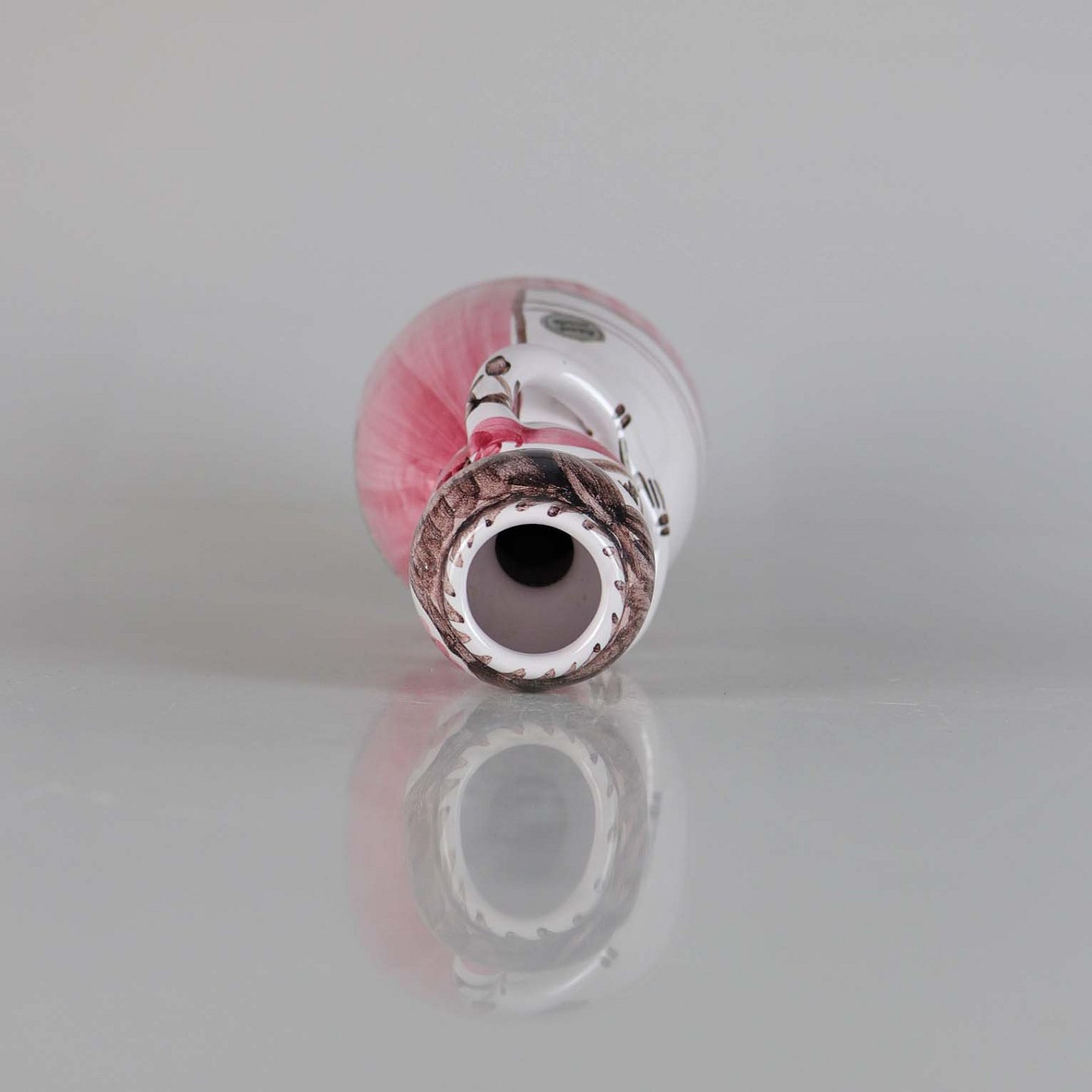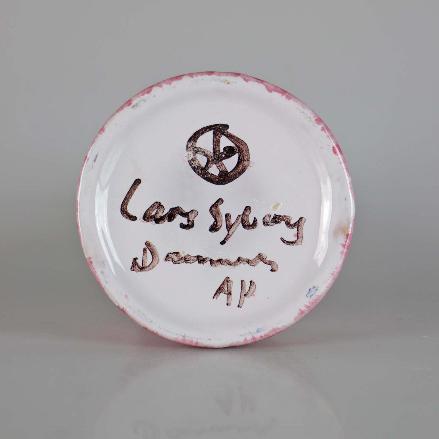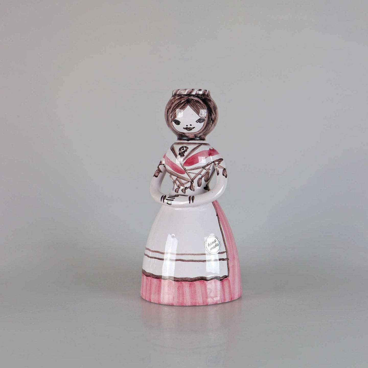 Stage af kvinde med kjole i rosa, hvid og brune farver
