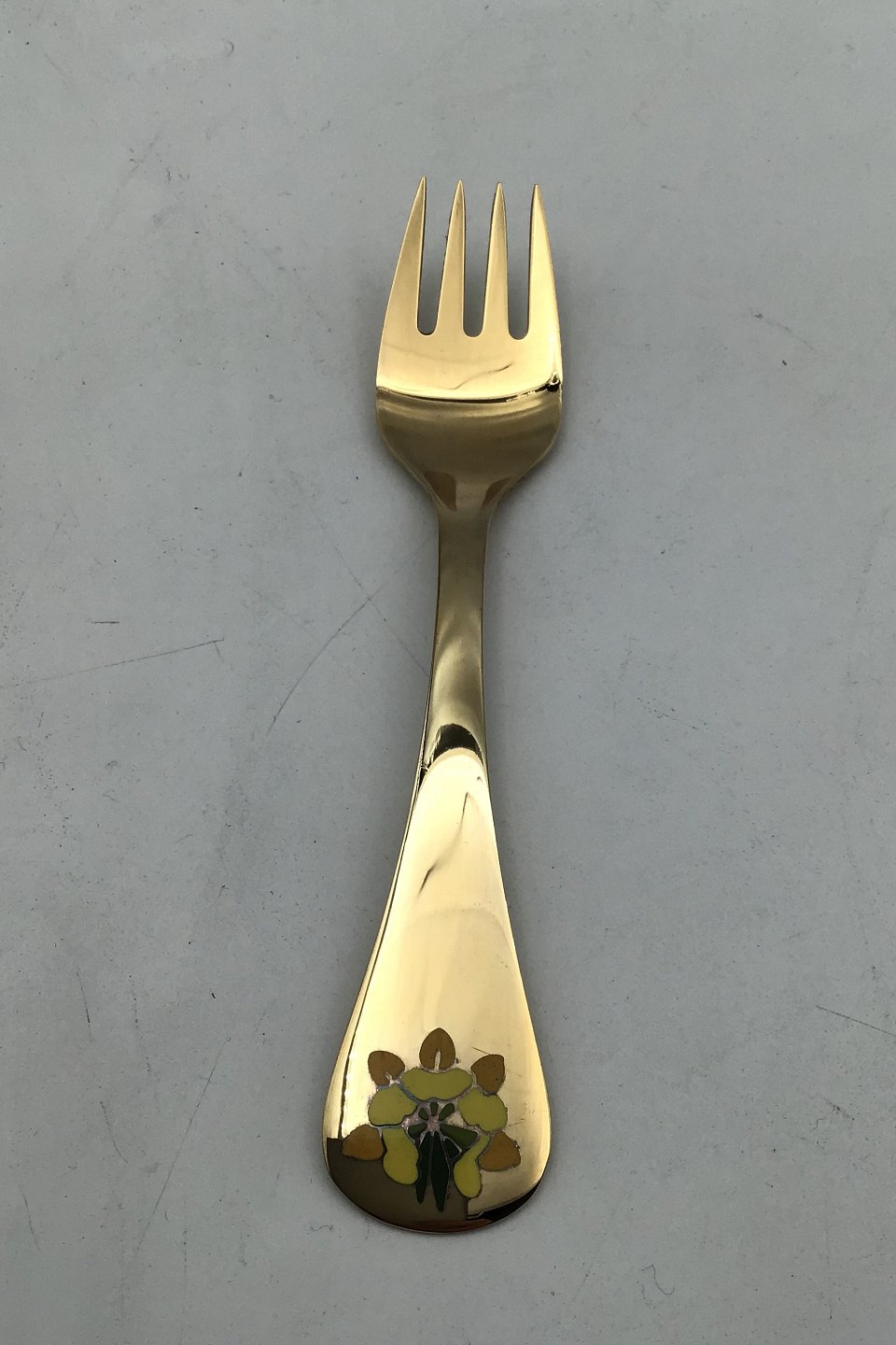 Georg Jensen Årsgaffel 1991 Forgyldt Sterling Sølv med emalje. Måler 14.5 cm (5.70 inch)