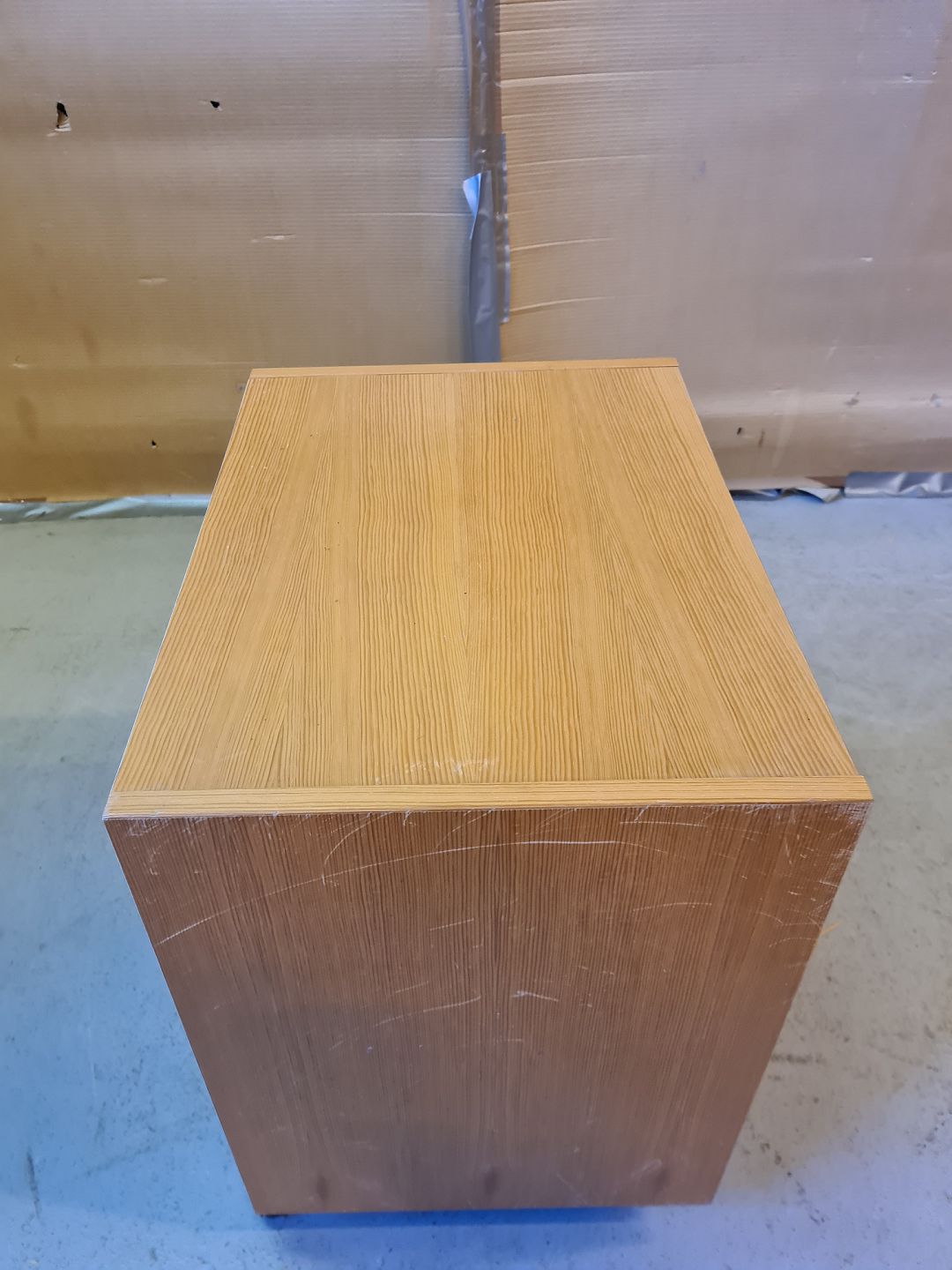 Lille møbel på hjul i fineret fyrretræ, fra 1980erne.