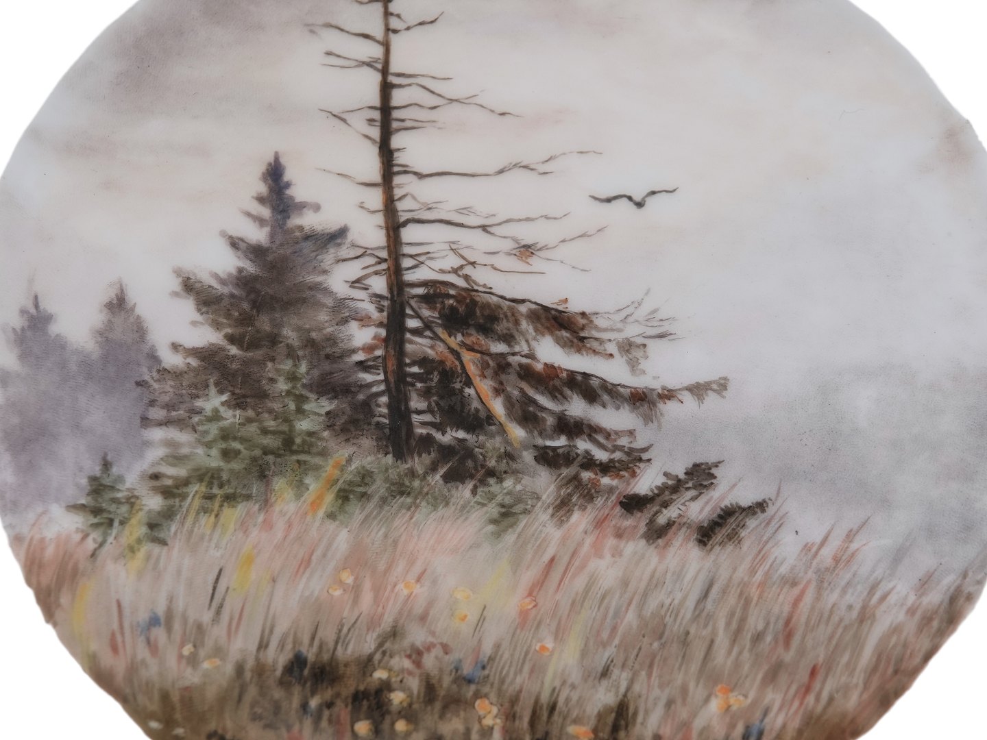 Der er et skår på forsiden samt bagsiden på kanten (se fotos), samt en lille smule slid på guldkanten ellers perfekt stand uden fejl.