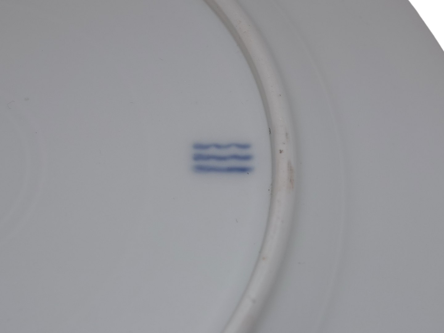 There are two chips on the edge (see pictures) and there is a very little wear on the gold edges otherwise perfect condition with no chips, cracks or repairs.