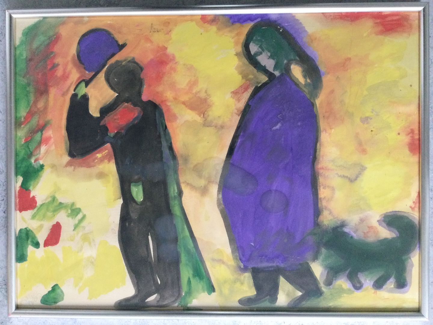 Akvarel 1965 - Mand hilser på gravid kvinde.