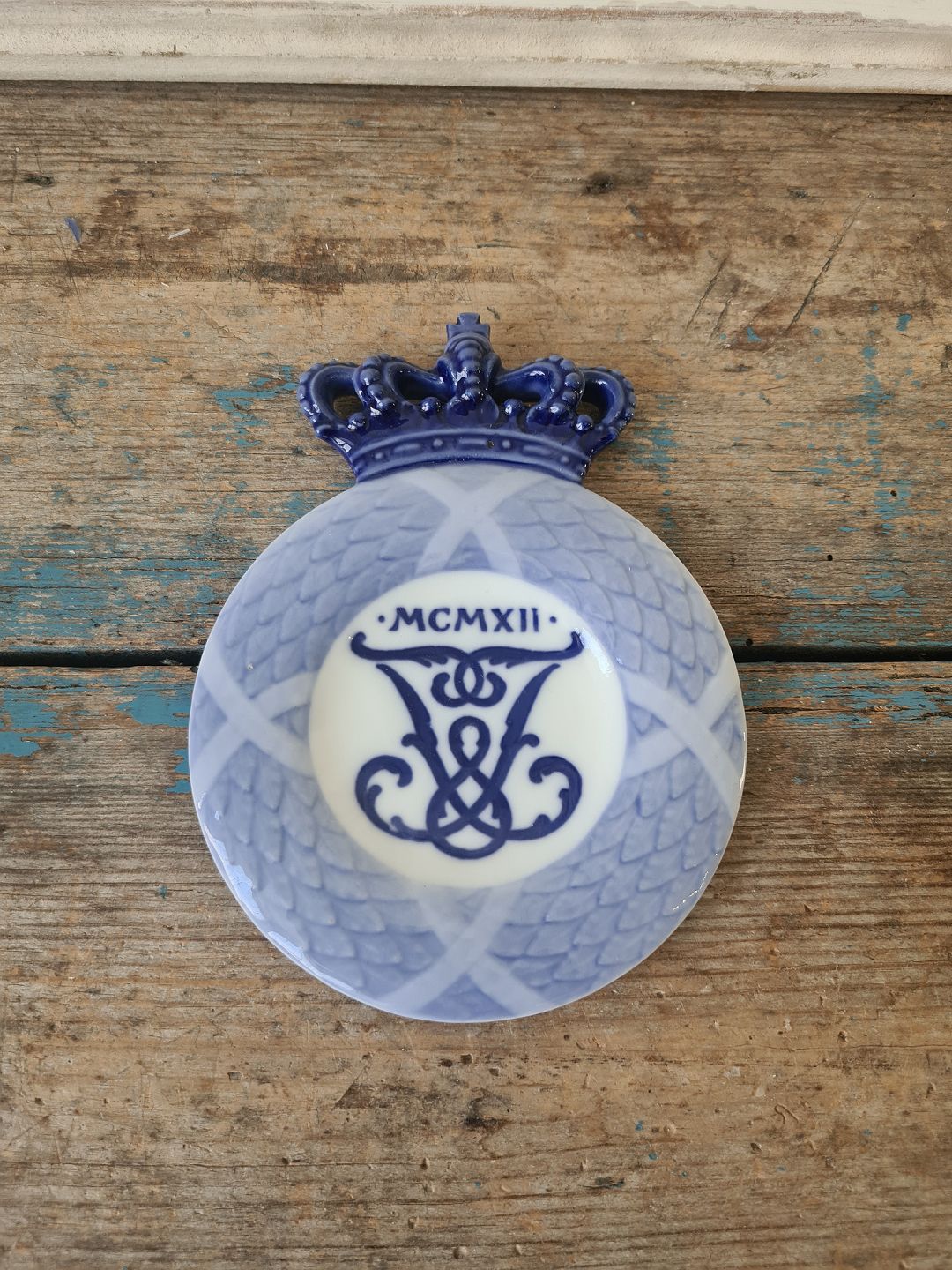 Royal Copenhagen Mindeplatte fra 1912 - Frederik VIII.s mindeplatte - Kronet krans med spejlmonogram