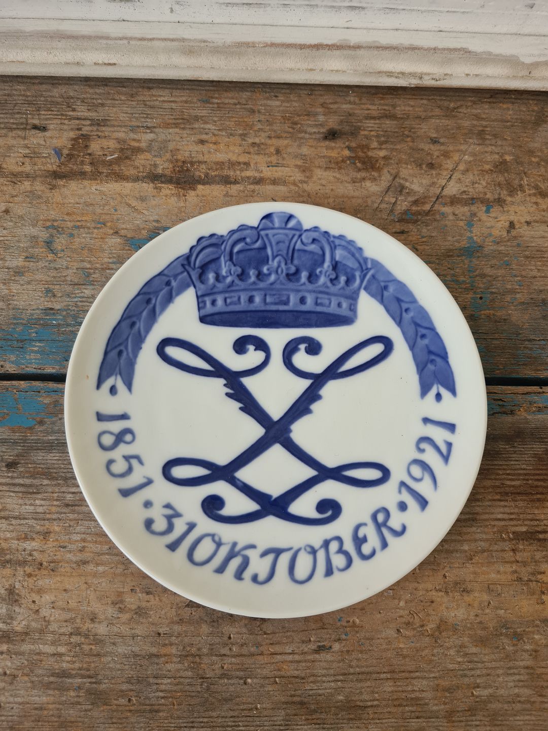 Royal Copenhagen Mindeplatte i anledningen af Enkedronning Louises 70 års fødselsdag 1851 31. oktober 1921