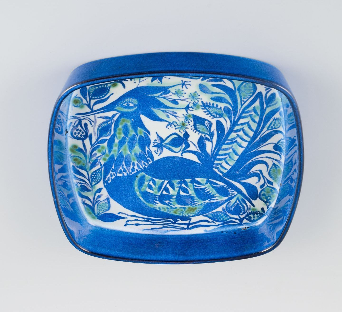 Royal Copenhagen, fajanceskål med motiv af fugl i modernistisk stil.