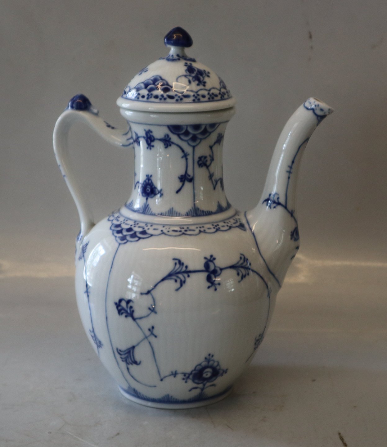 Kongelig Dansk Porcelæn 1-519 Kaffekande m/låg Musselmalet Halv blonde Ca 24 cm 0.96 liter. I fin og hel stand