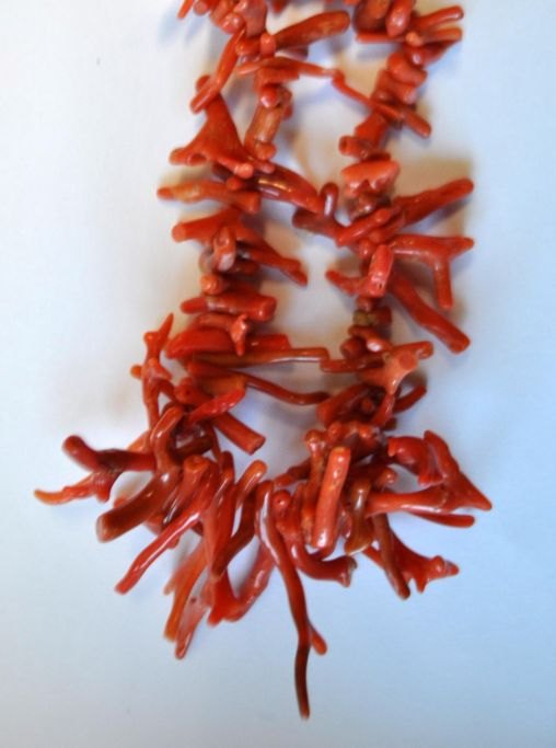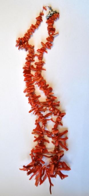 Coral chain, 20th century. Bright red corals. L.: 50 cm. With silver clasp.