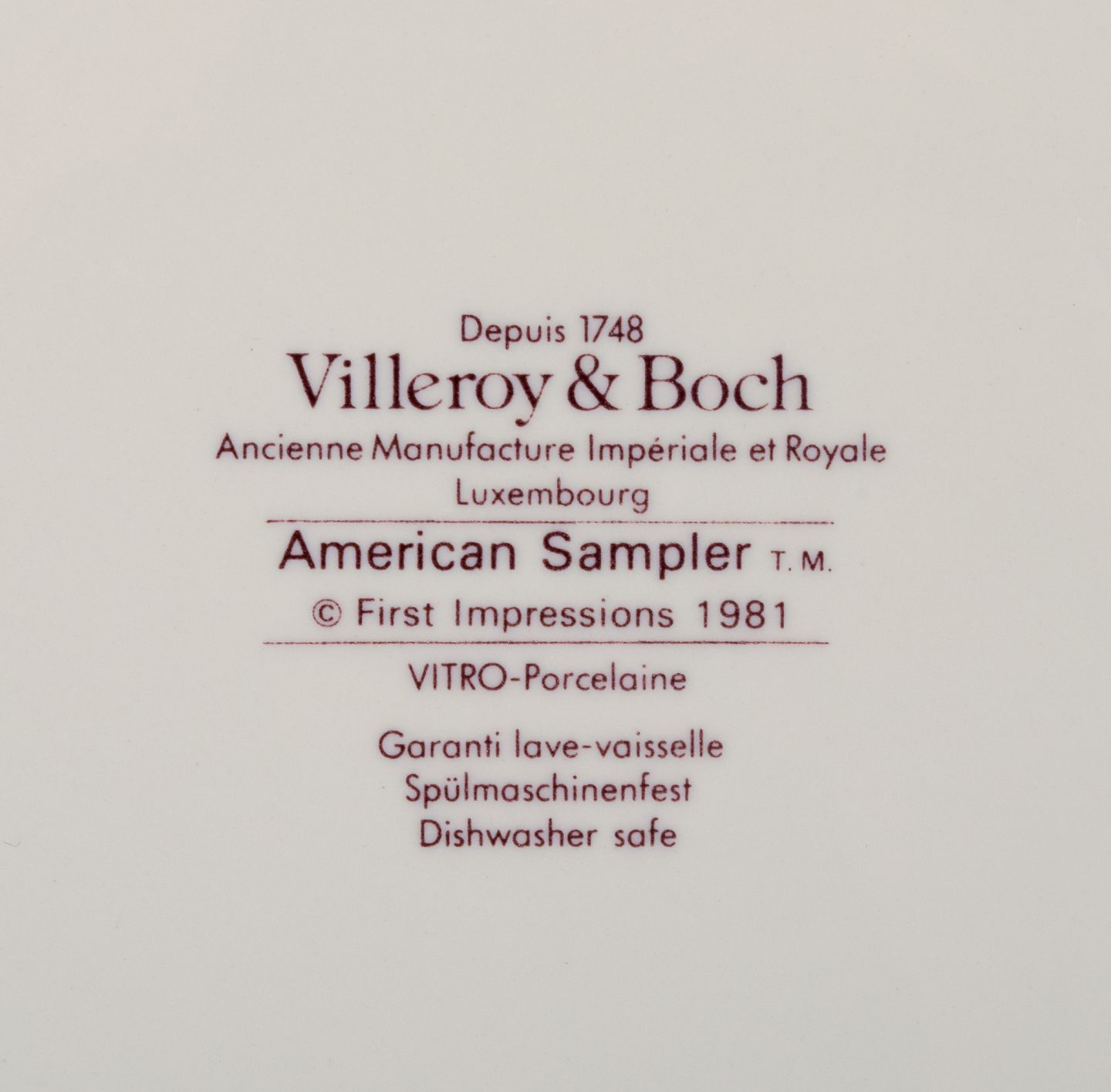 Villeroy & Boch, Luxembourg, et sæt på ni ”American Sampler” tallerkner i porcelæn dekoreret med landskab, ænder, fisk og får.