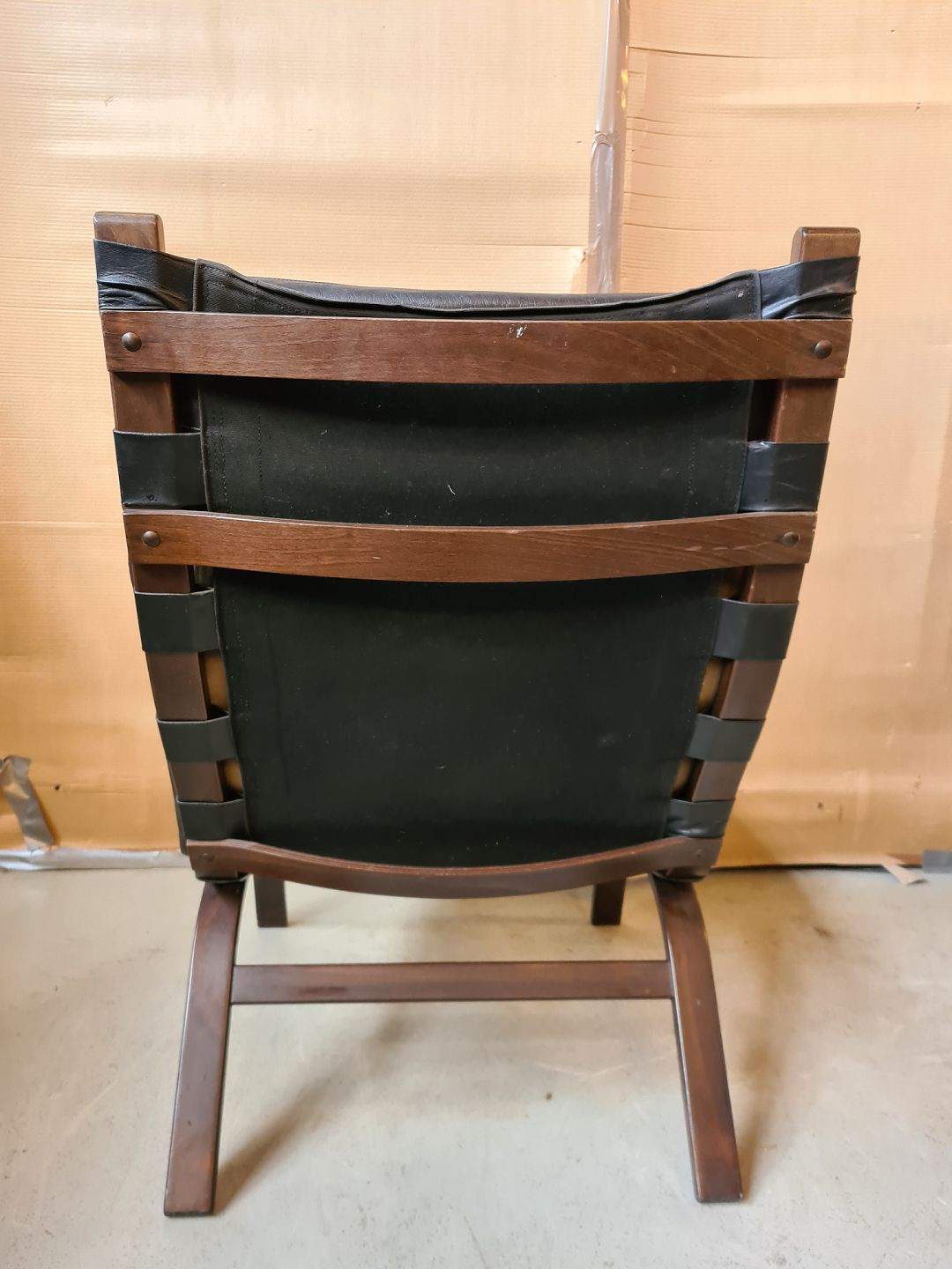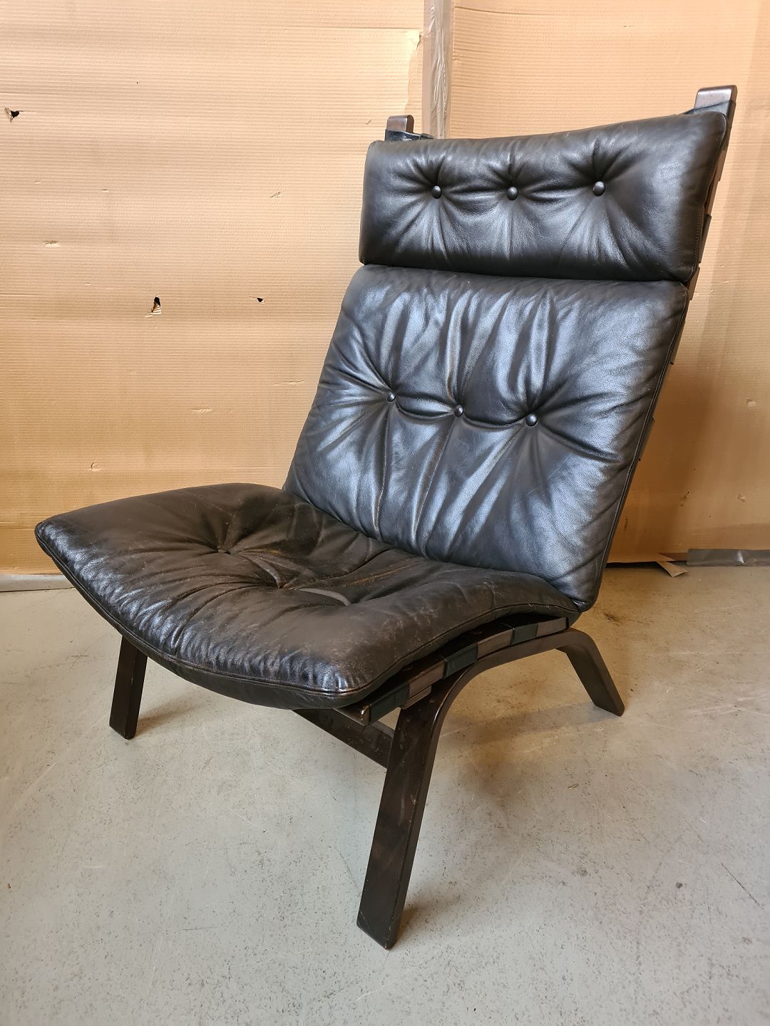 Lænestol med læderhynde fra 1980erne.