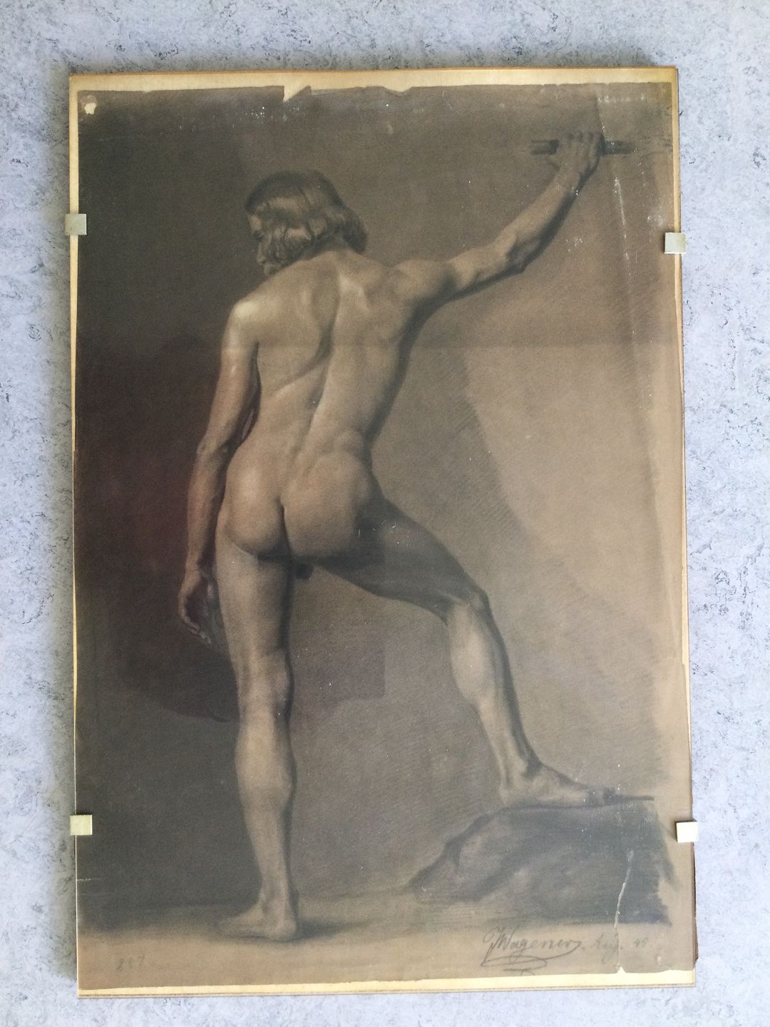 Tegning 1845 af J. Wagener - Akademitegning af nøgen mand.