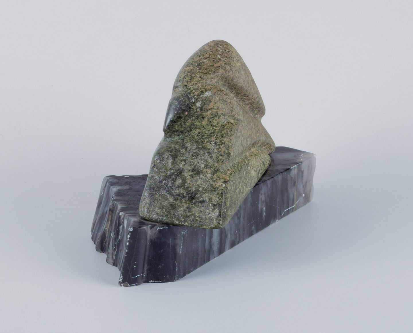 Greenlandica, soapstone sculpture on a marble base. Greenland.