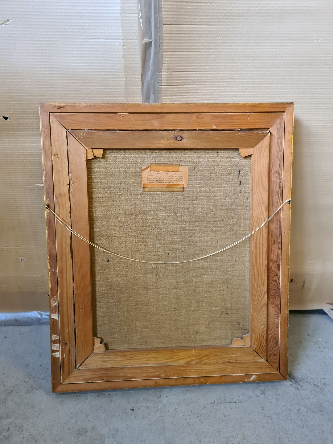 Maleri af V. Knage i guldmalet ramme, fra 1940erne.