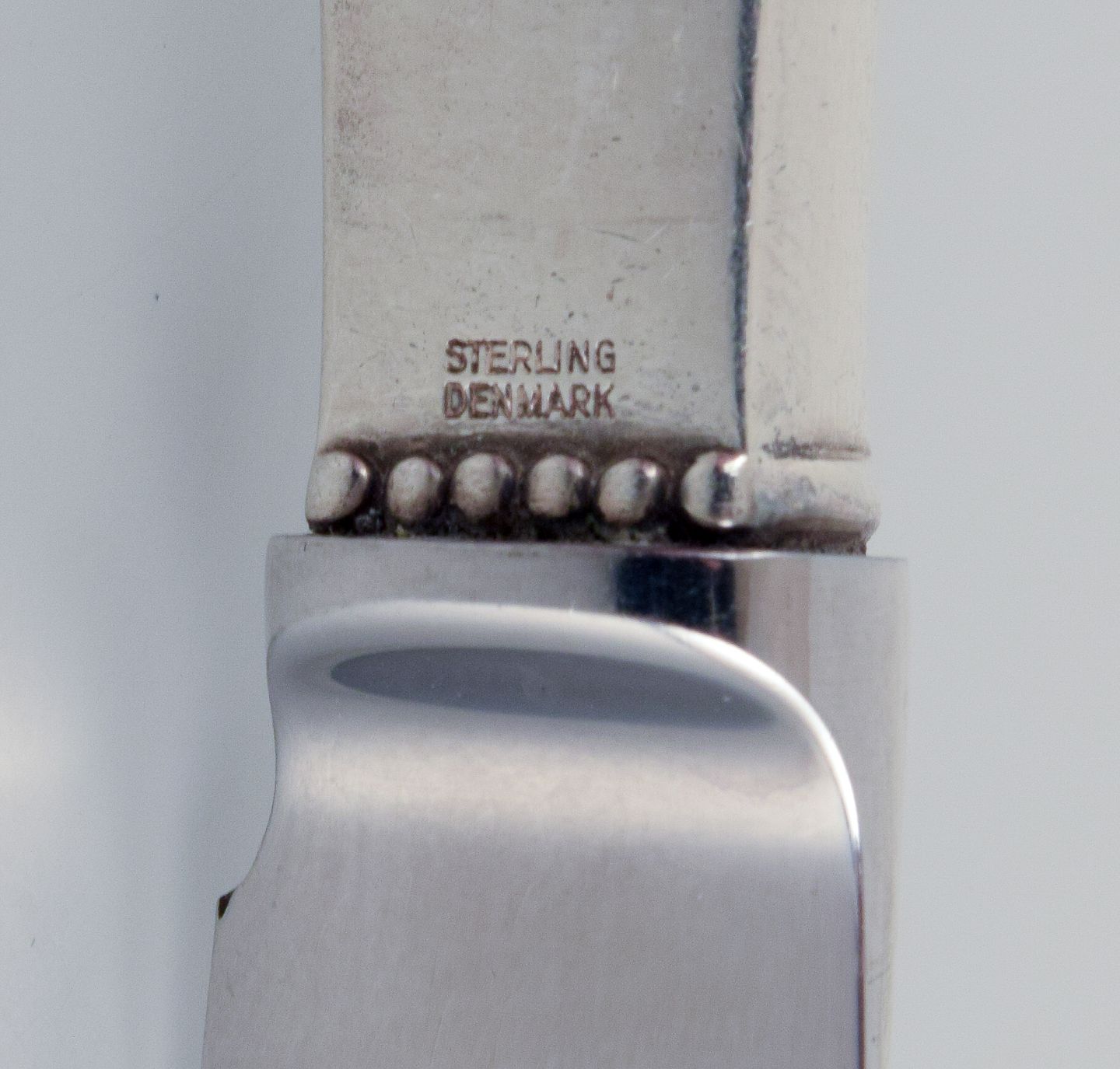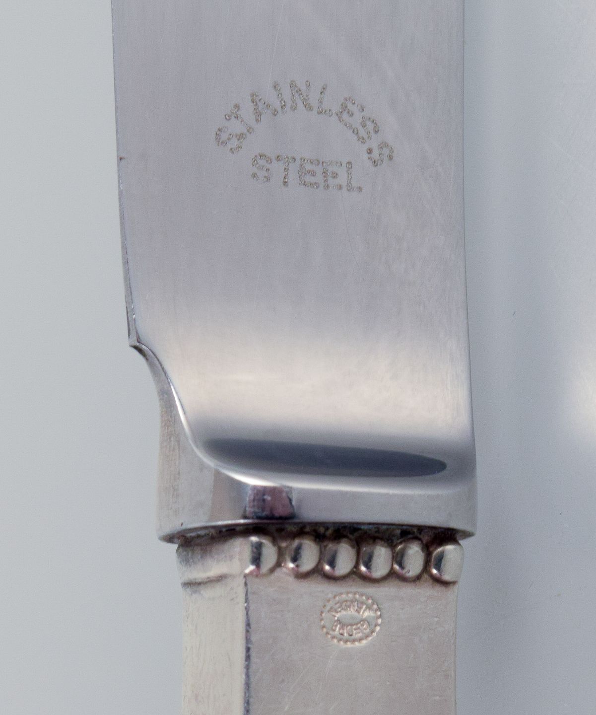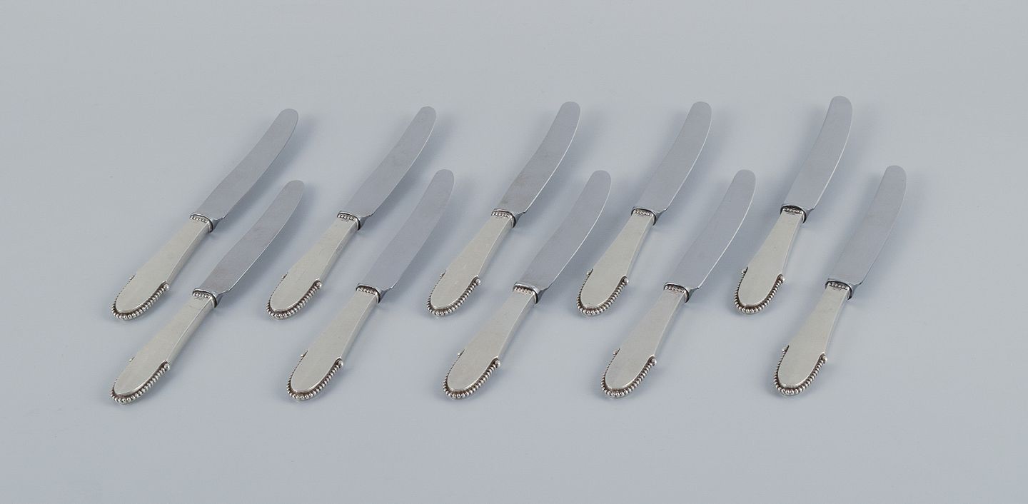 Et sæt på ti frugtknive i sterlingsølv. Blad i rustfrit stål.
