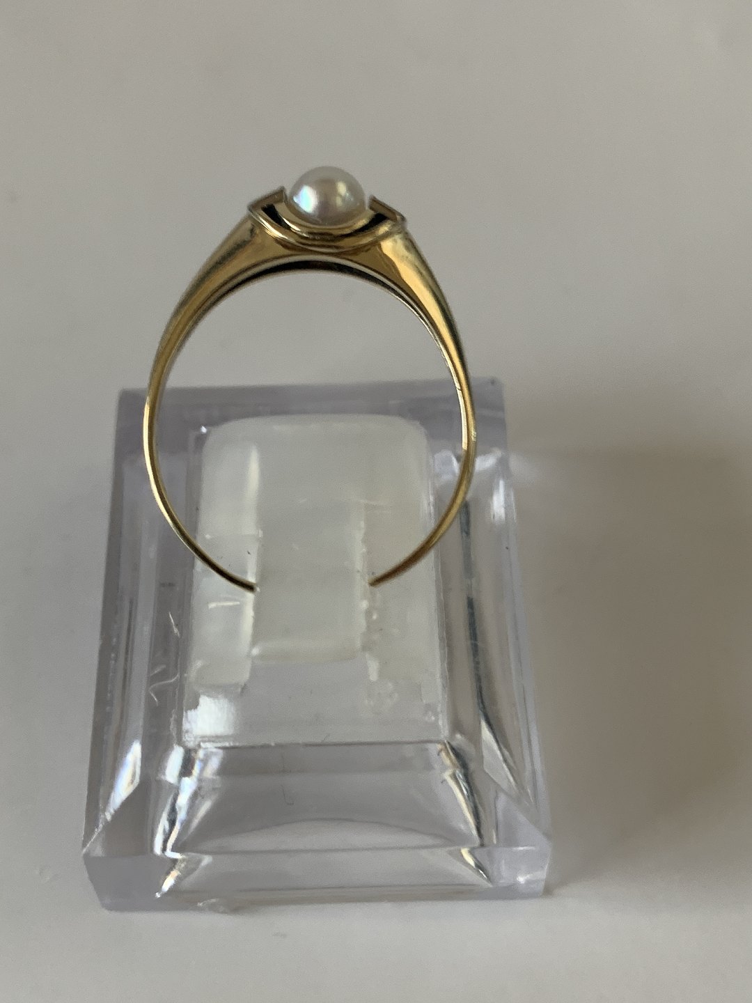 Ladies' ring with diamonds and a pearl in 14 carat gold