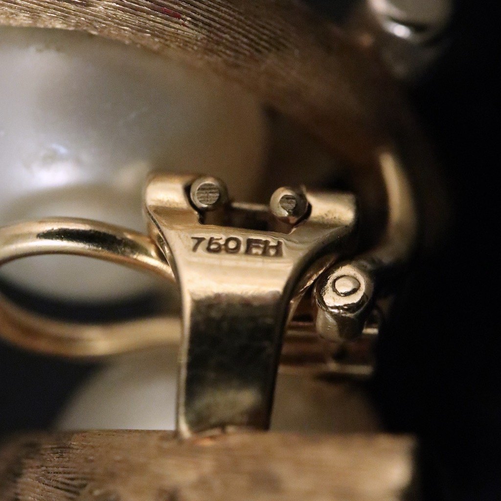 Frantz Hingelberg. Øreklips i 14k guld og hvidguld med Tahiti perler.