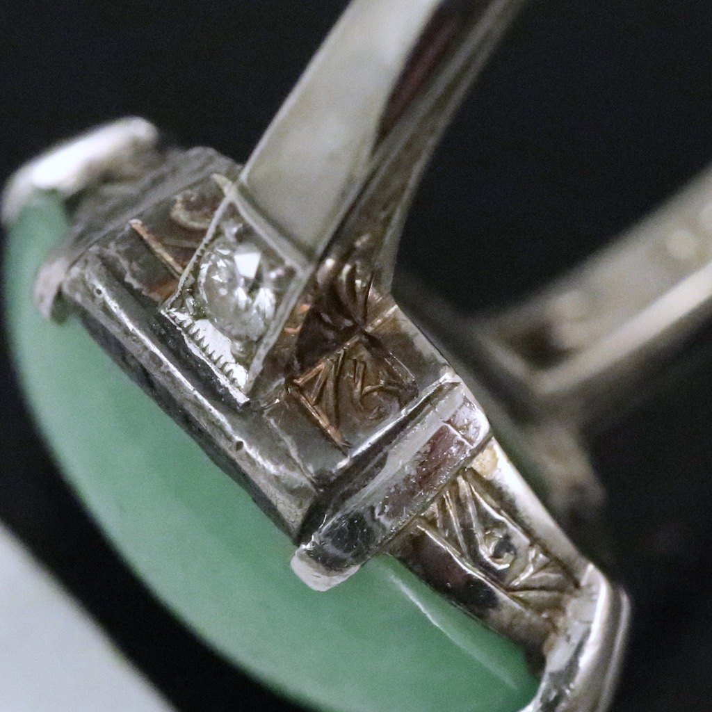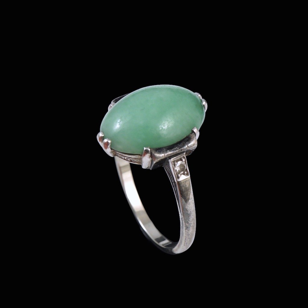 A. Dragsted - Copenhagen. 18k White Gold Ring with Jade and two Diamonds.