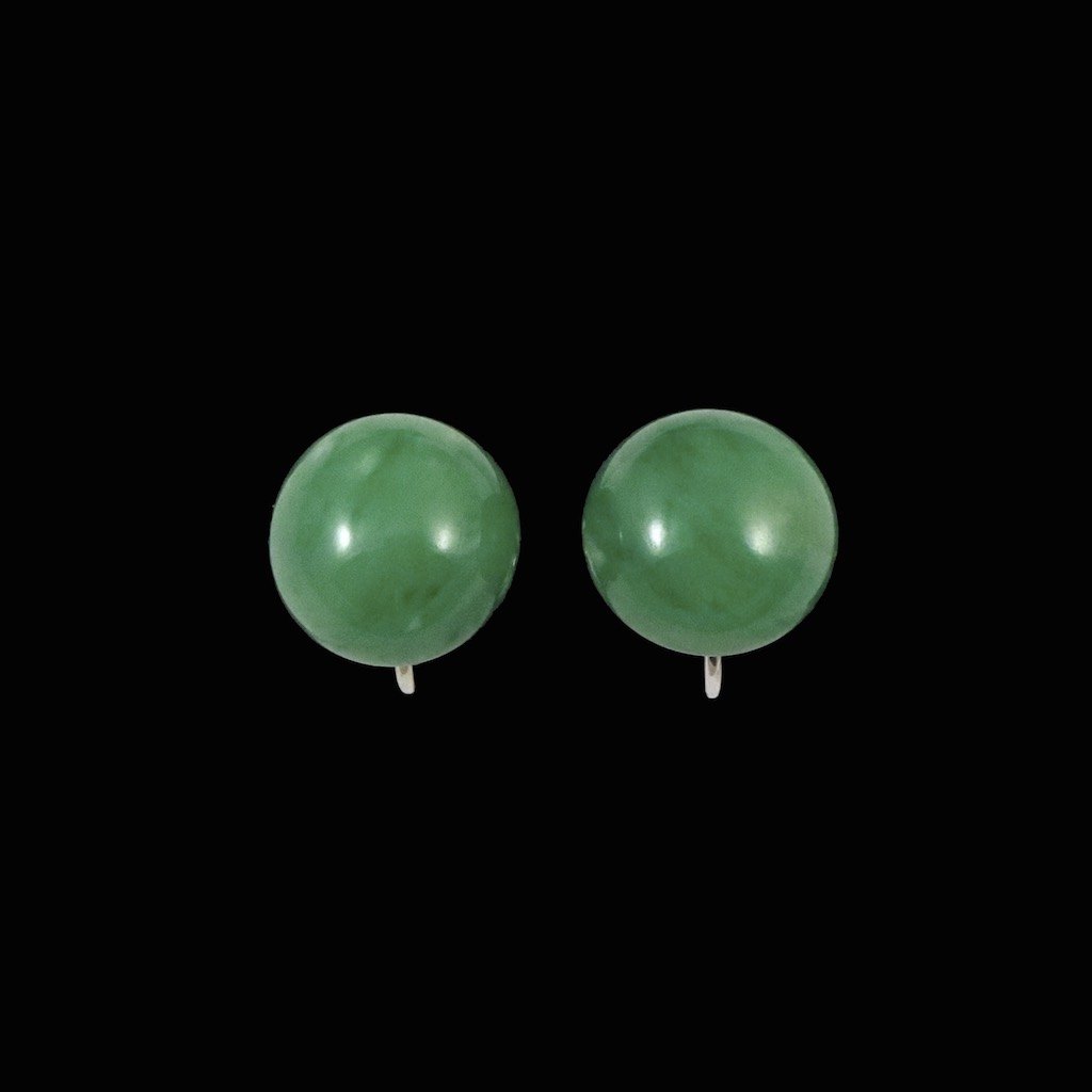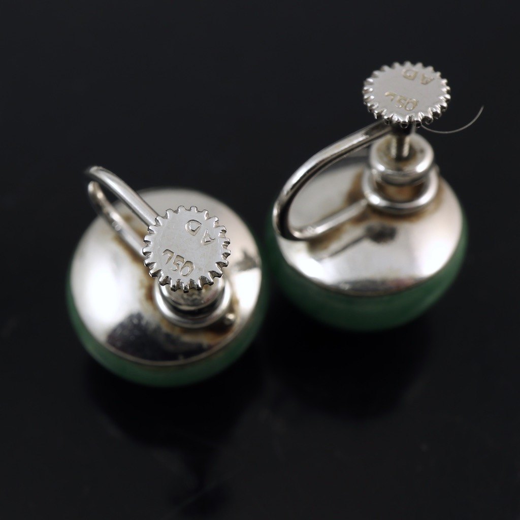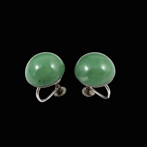 A. Dragsted. Øreskruer i 18k hvidguld med Jade.