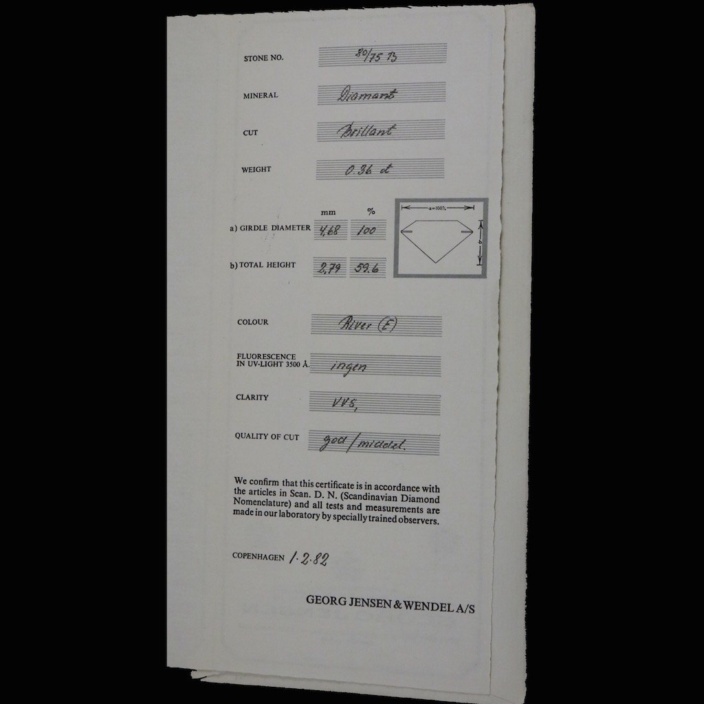 Original Georg Jensen Diamond Certificate from 1982 included.