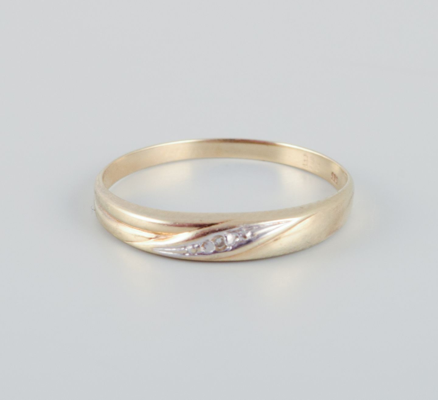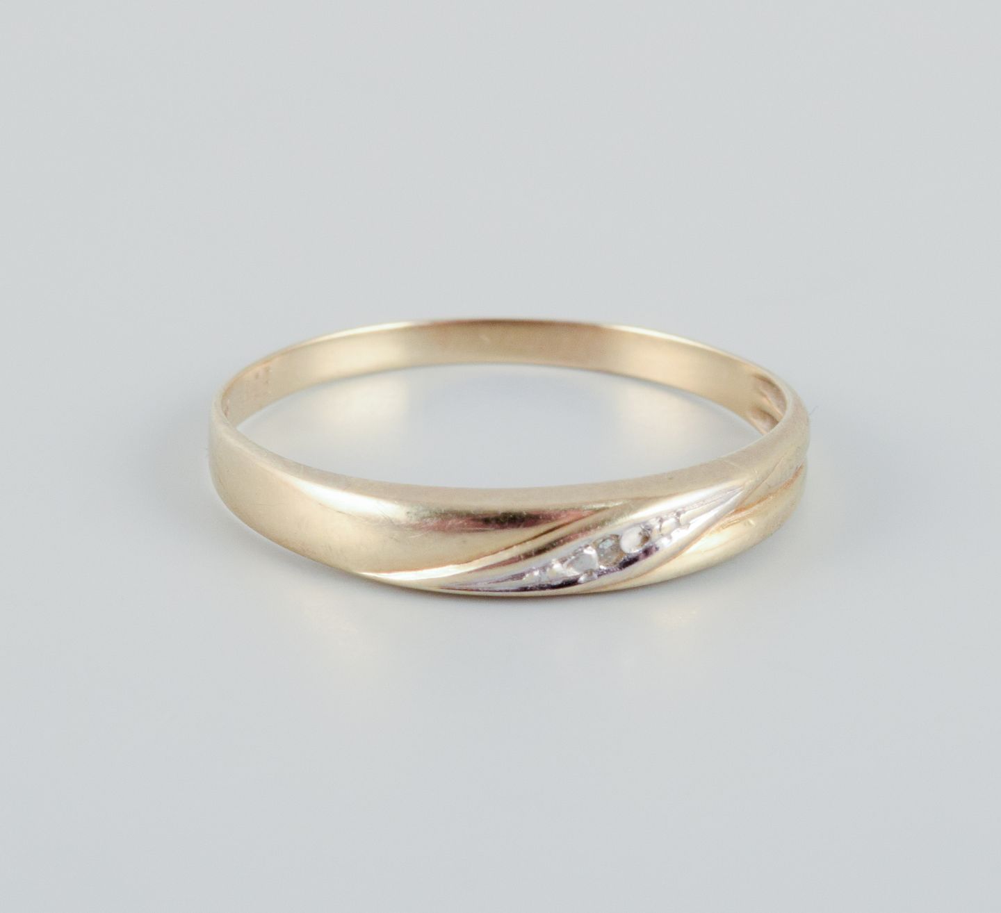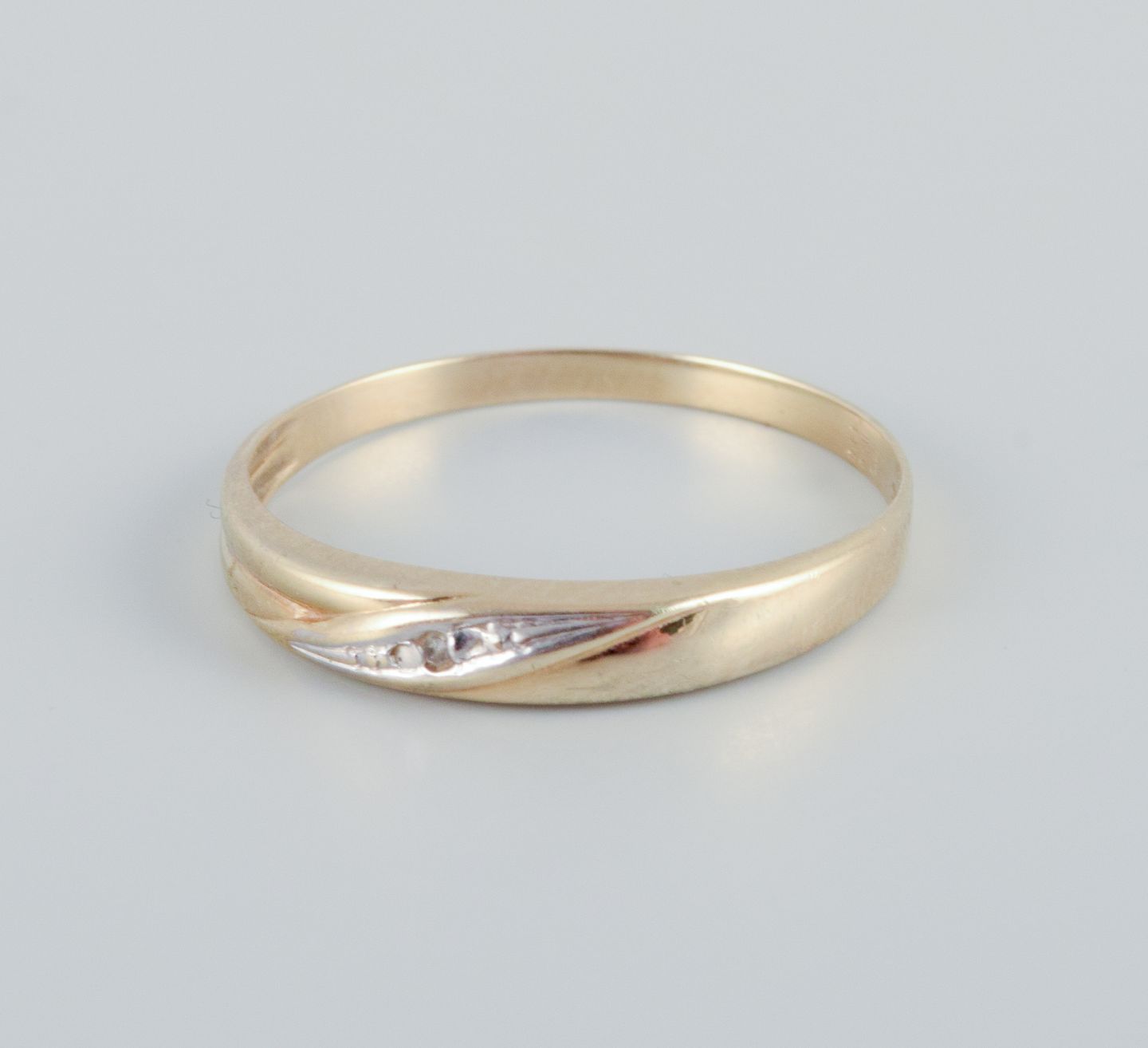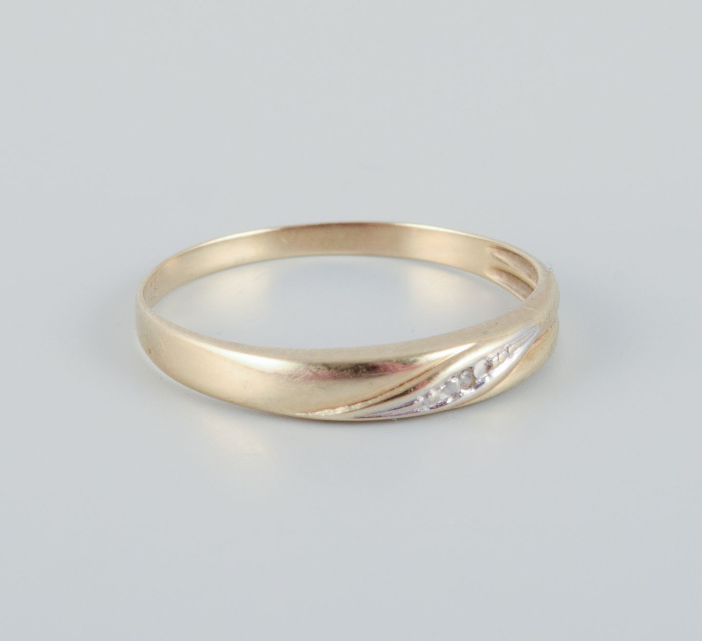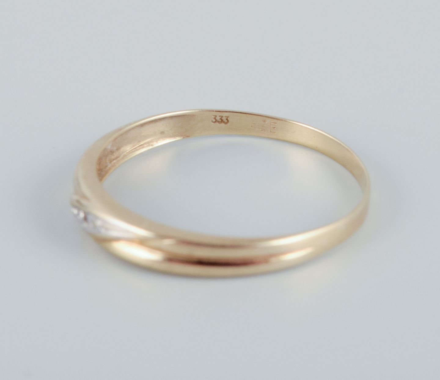 8 karat guldring prydet med små brillianter. Modernistisk design.