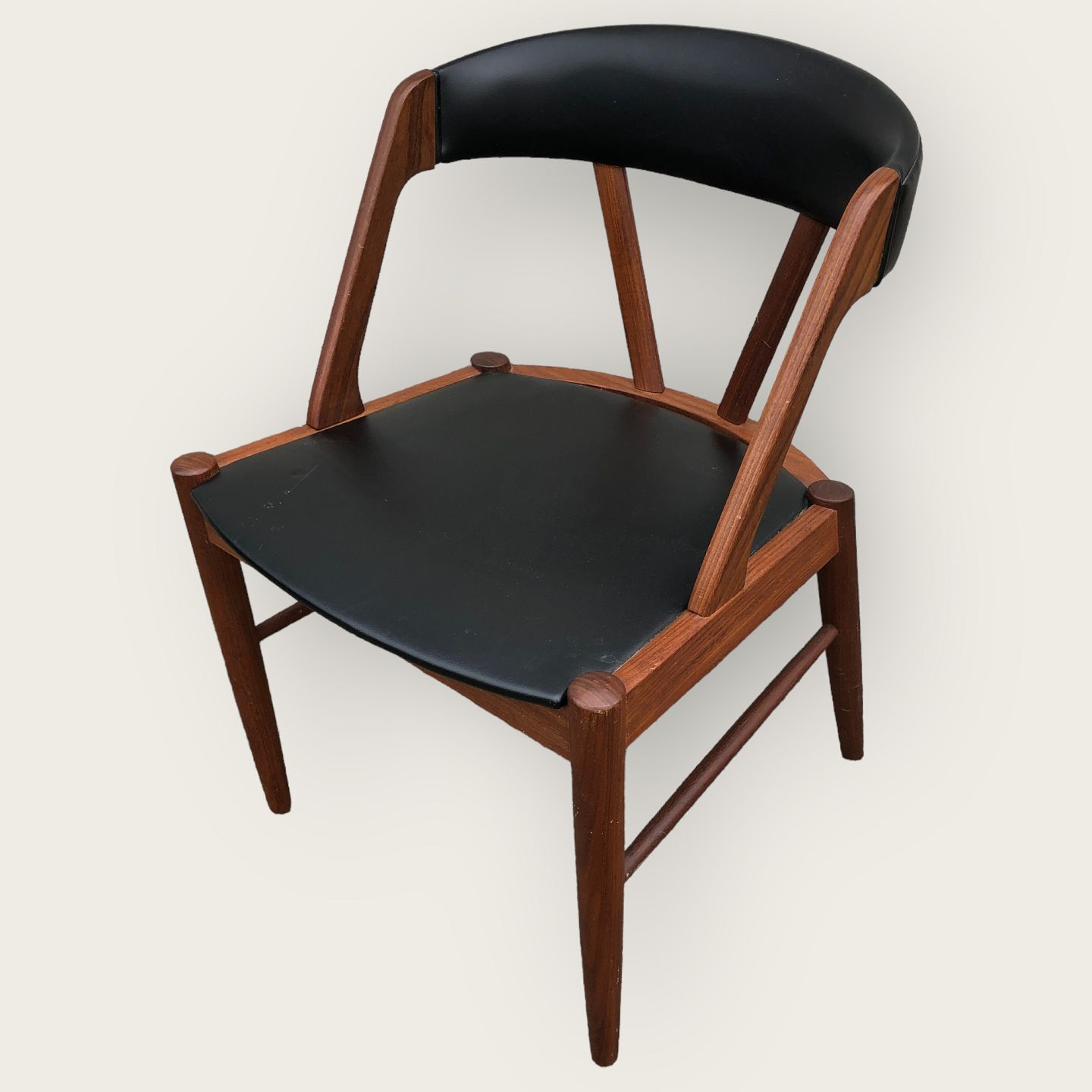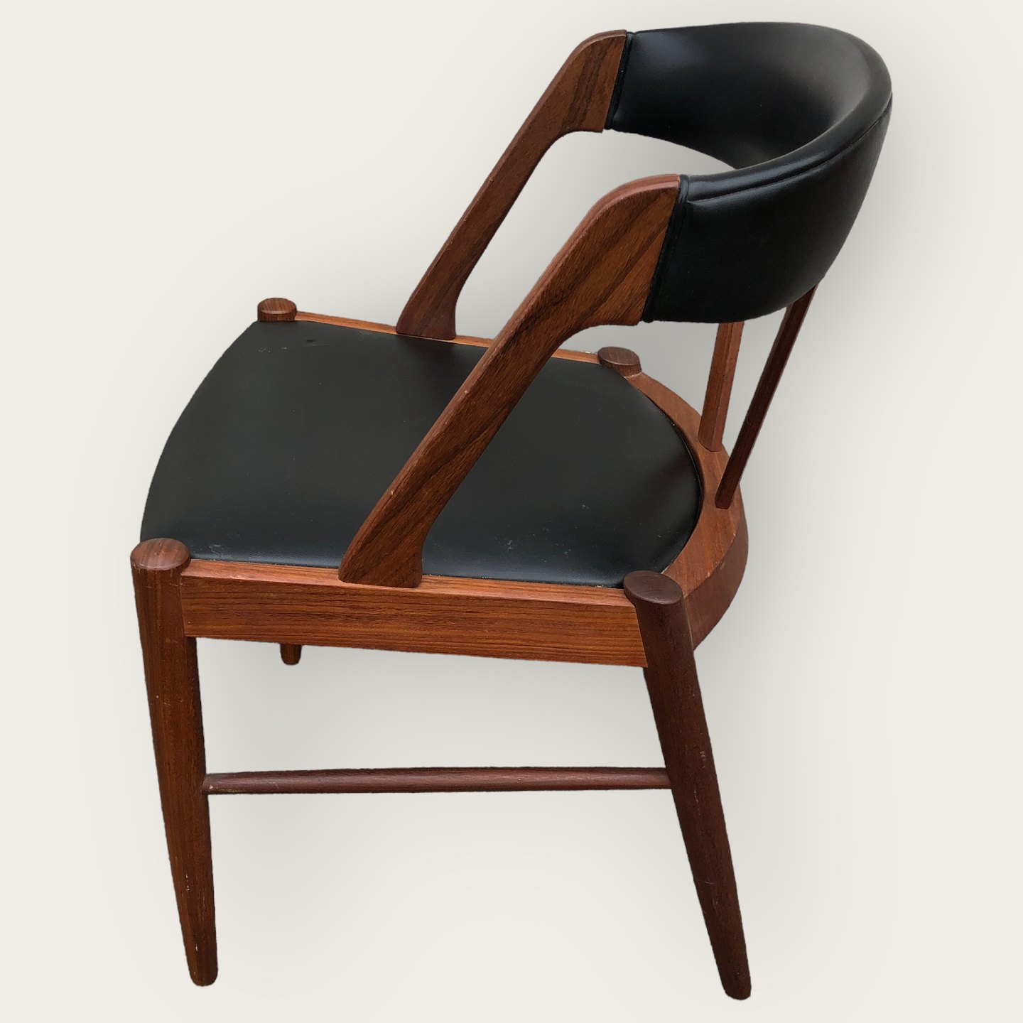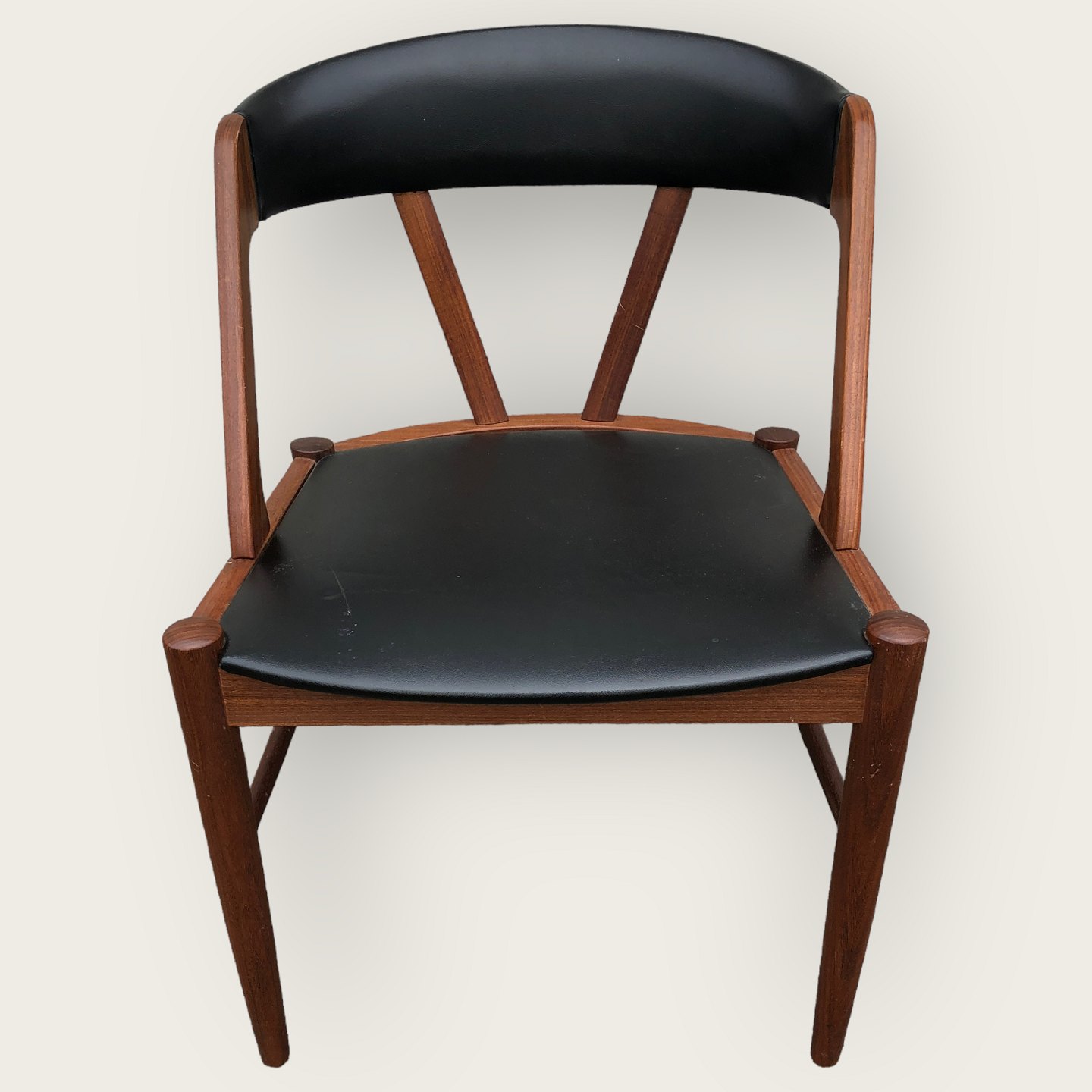 Stol i teaktræ med betræk i sort kunststof. Danish modern fra 1960'erne. Pæn brugt stand.