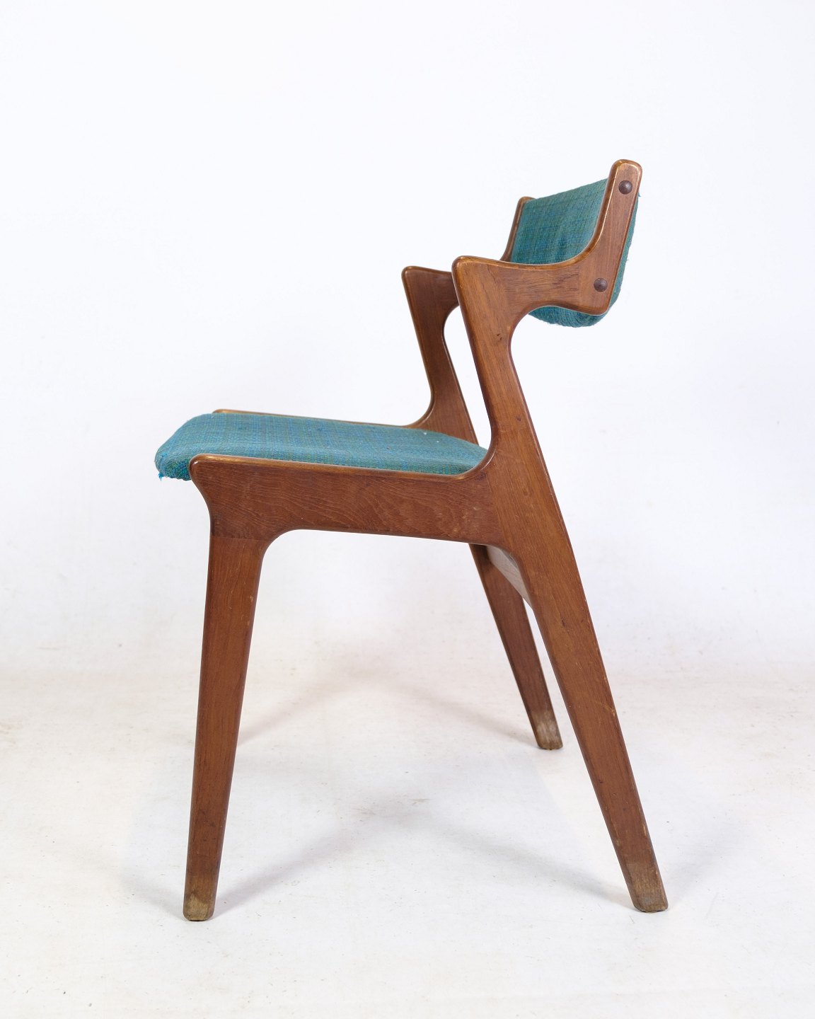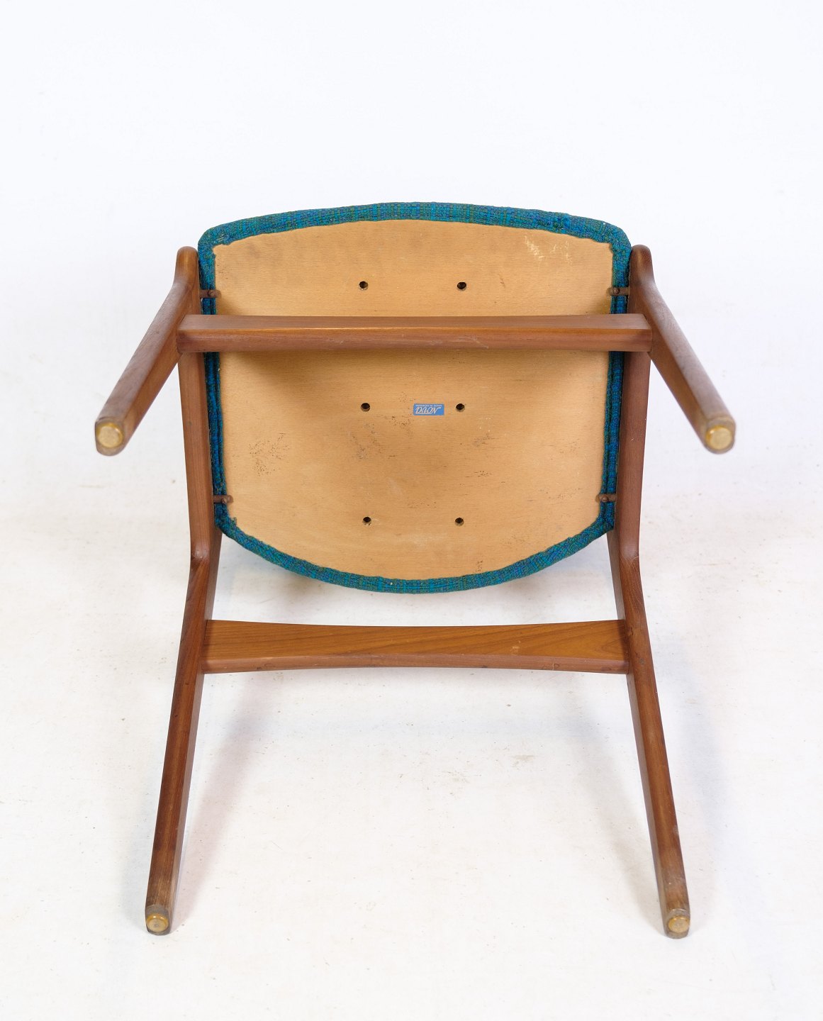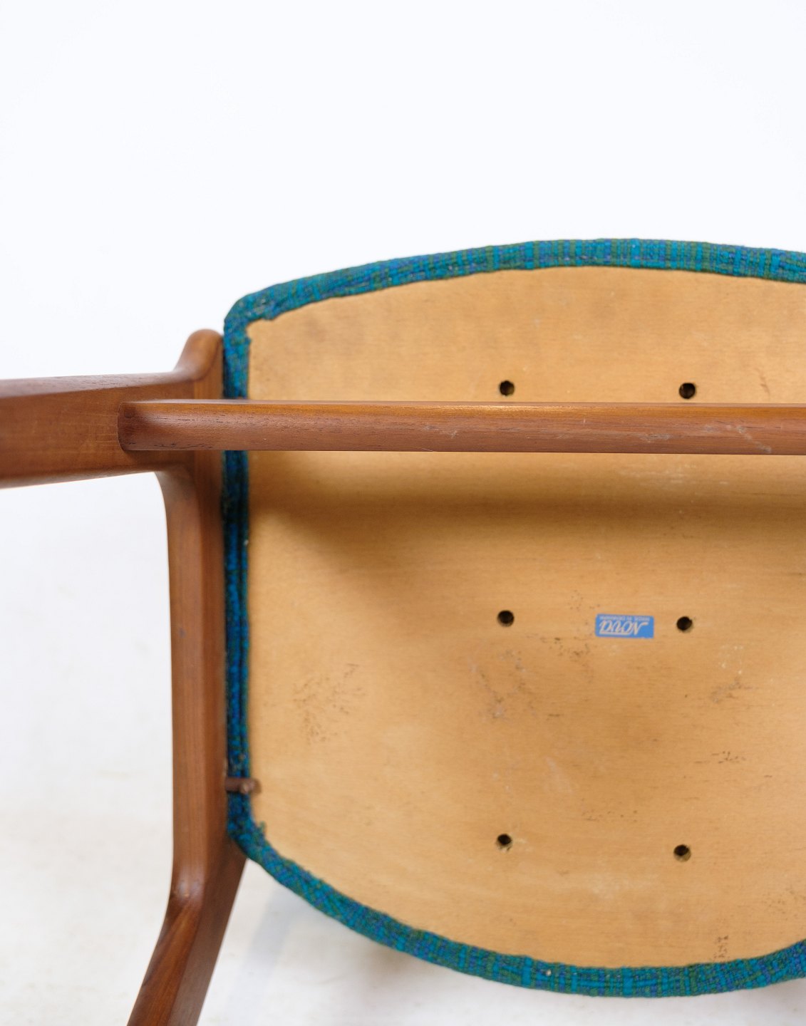Sæt af fire spisestuestole i teak og lyseblåt stof af dansk design og af Nova Møbelfabrik, 1960erne