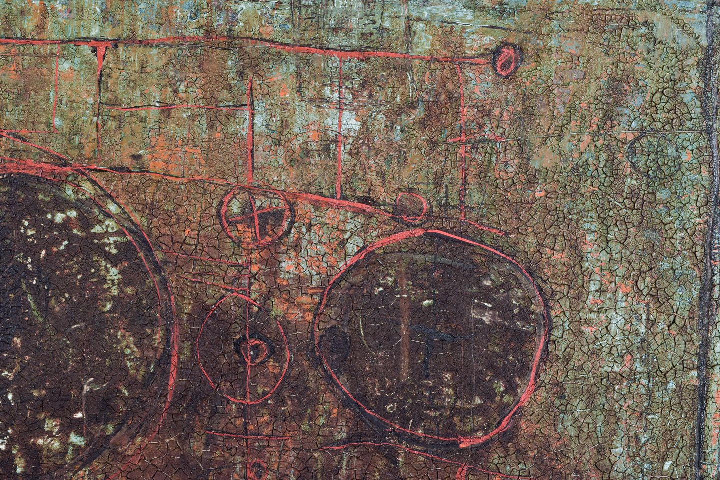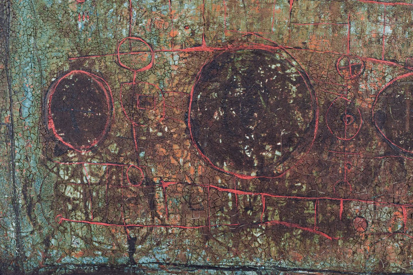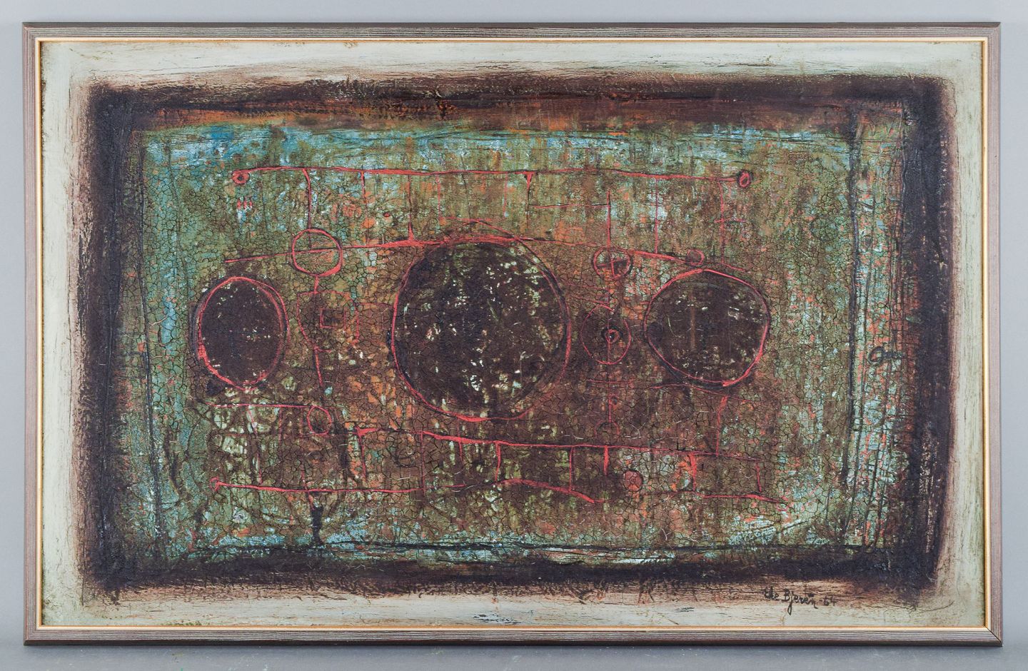 Eke Bjerén (1943-1999), svensk kunstner, olie på plade. Abstrakt komposition.