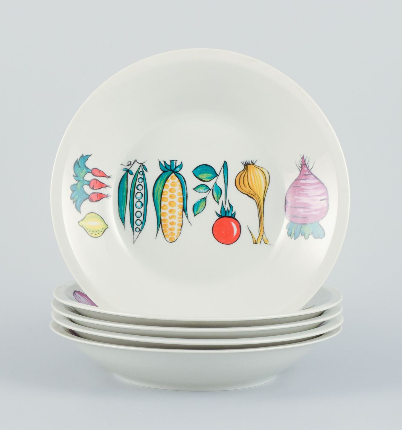 Villeroy & Boch, Luxembourg, five deep plates in stoneware featuring various vegetable motifs. "Primabella" collection.
