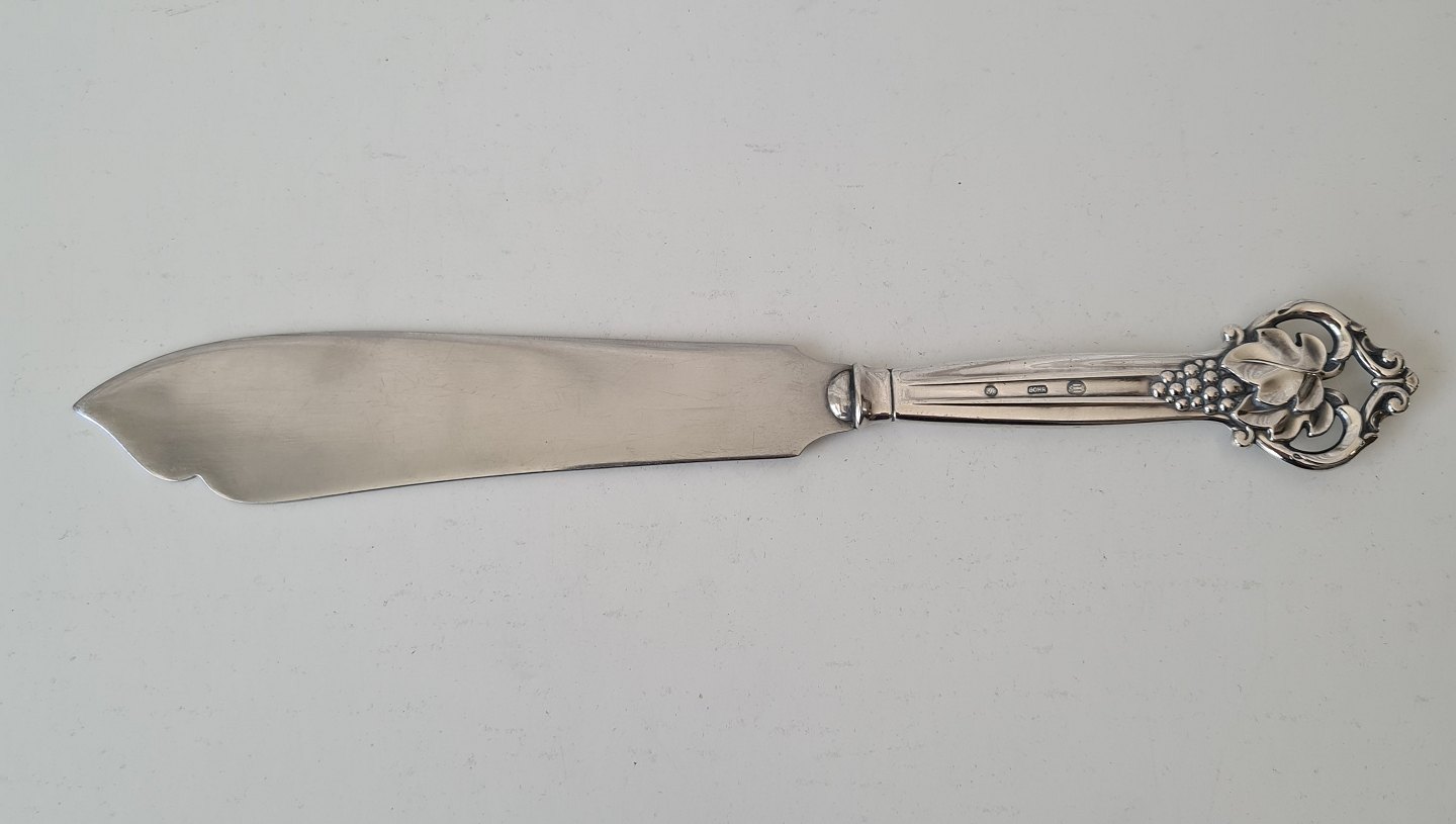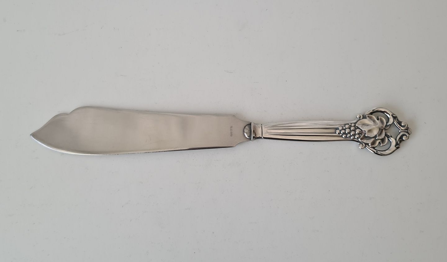 Kagekniv i sølv og stål dekoreret med druer fra 1950
