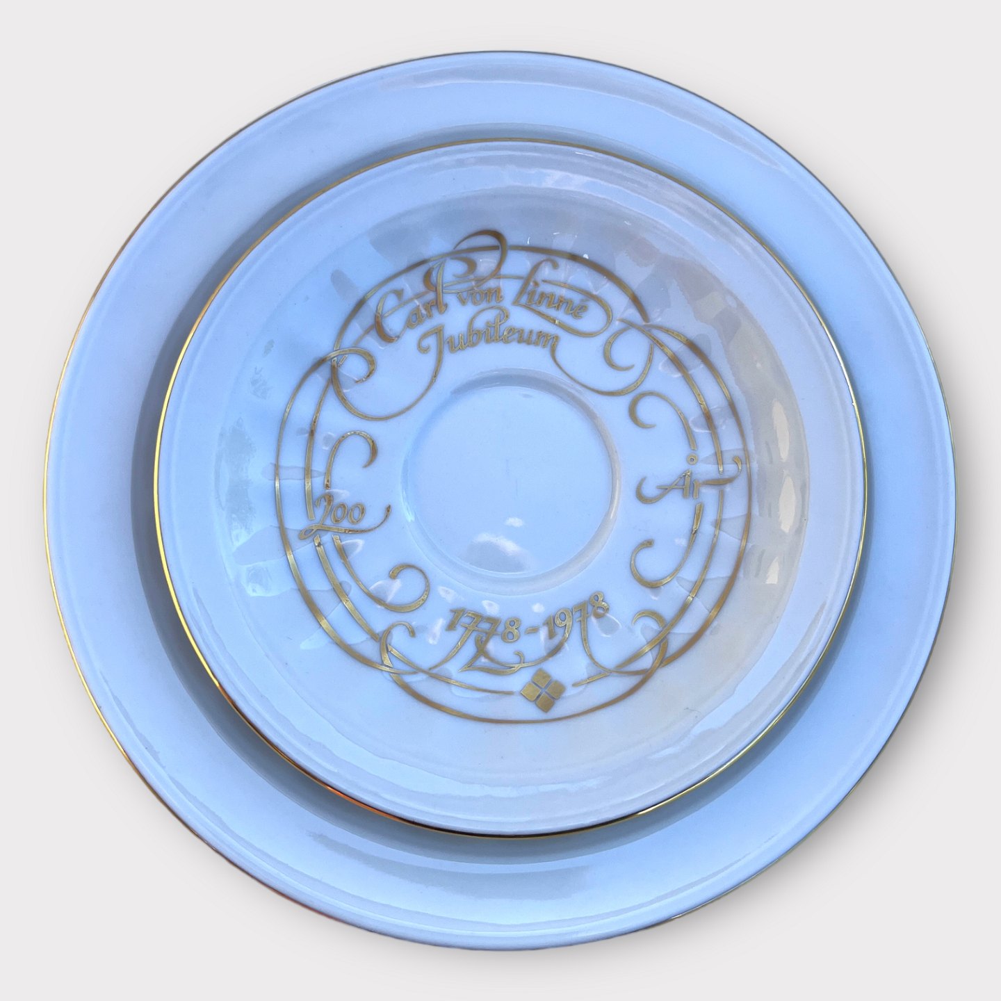 Firkløveren, Carl von Linné, Trio coffee set 1778 - 1978, Cup 7cm high, Plate 17cm in diameter *Perfect condition*