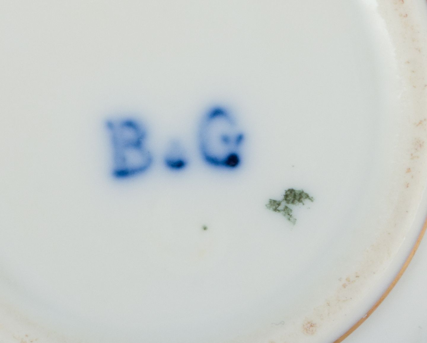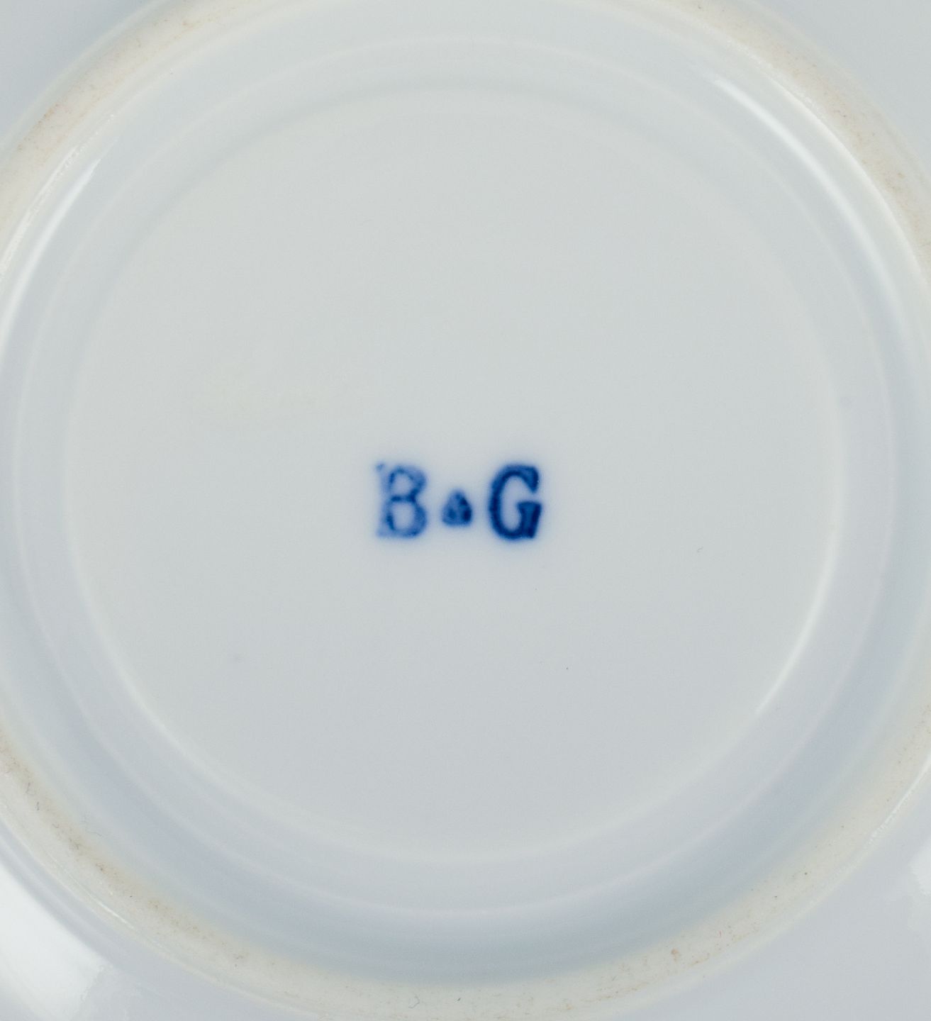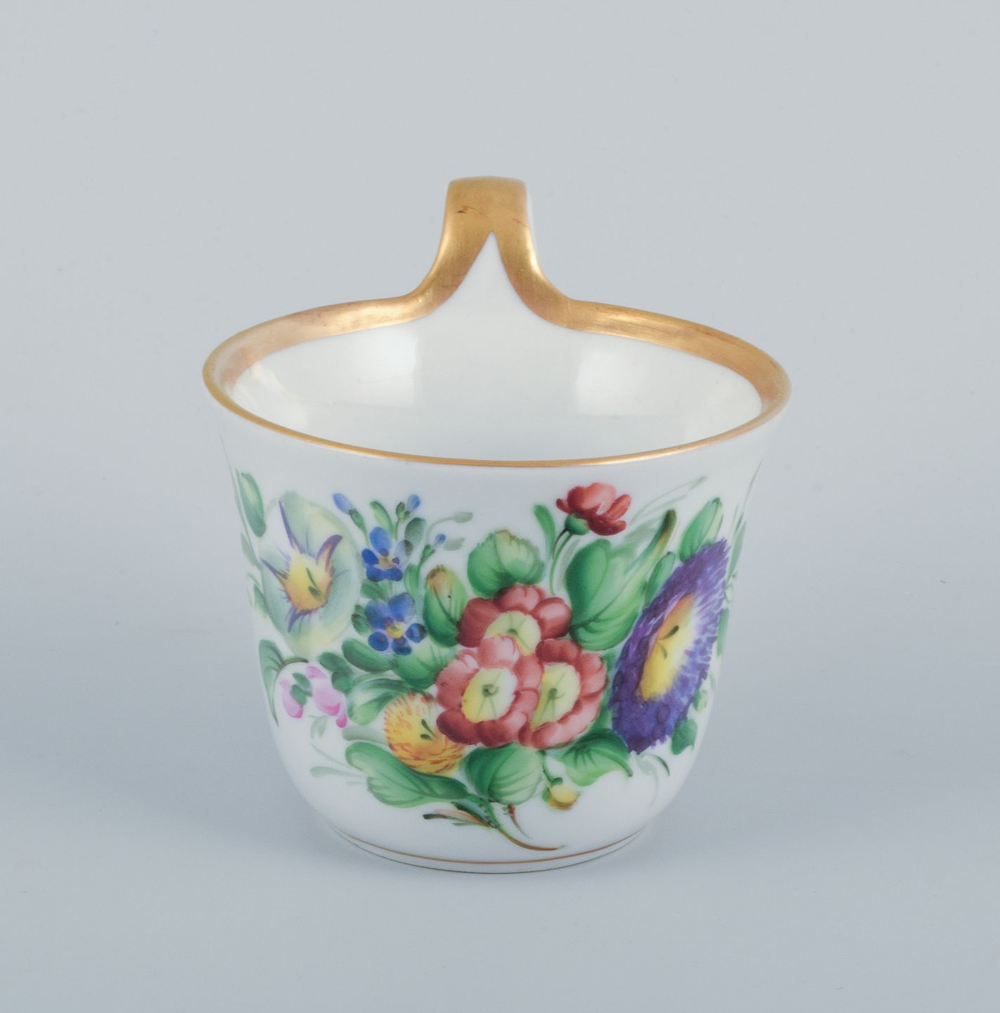 Bing & Grøndahl, a set of four antique coffee cups with high handles and saucers. Hand-painted with polychrome flower decoration. Porcelain of strong quality.
