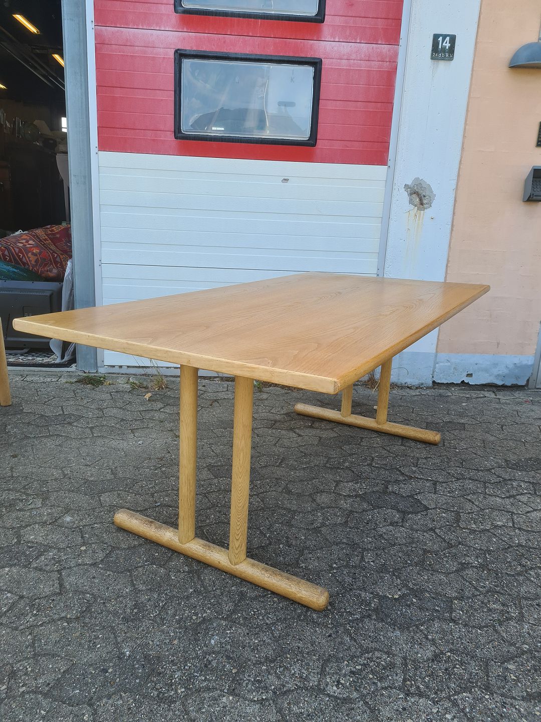 Text available in Danish: Bord i fineret egetræ med 6 stole, fra 1980erne.