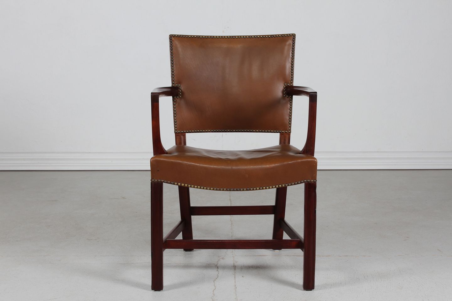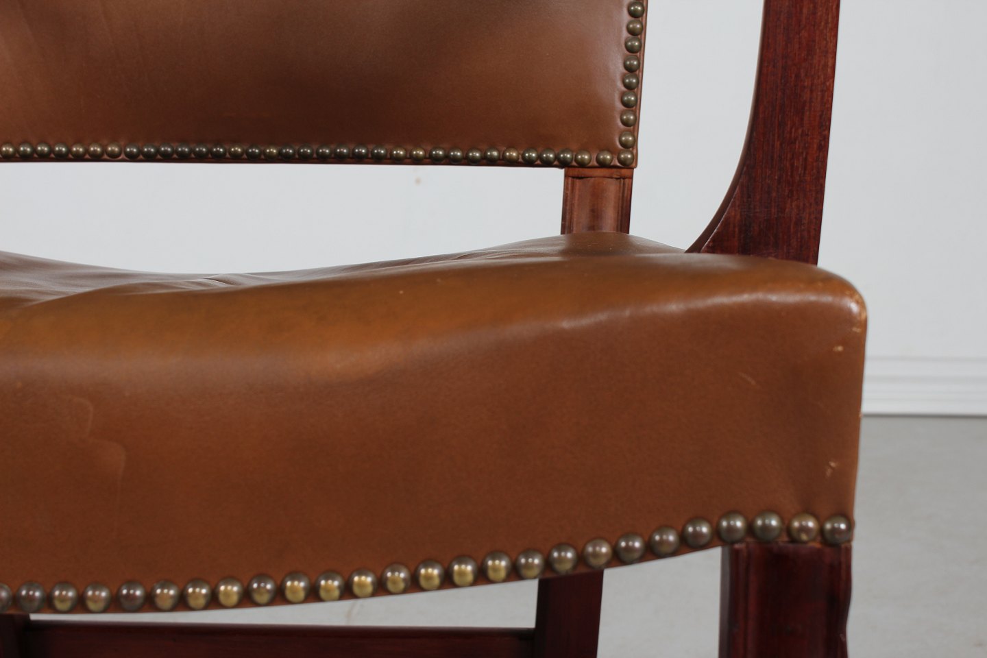 betrukket med brunt patineret sømbeslået læder
