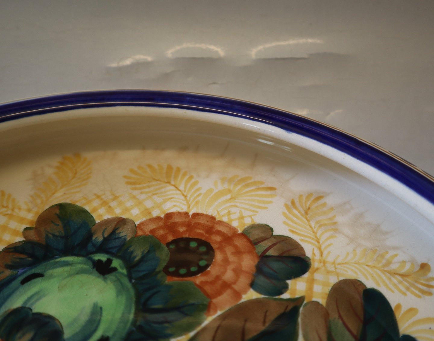 732-1235 Blomsterskål med indbøjet kant 5 x 31 cm (Nils Thorsson 1935) Royal Copenhagen Aluminia fajance Aldersrelaterede brugsspor og krakkeleringer