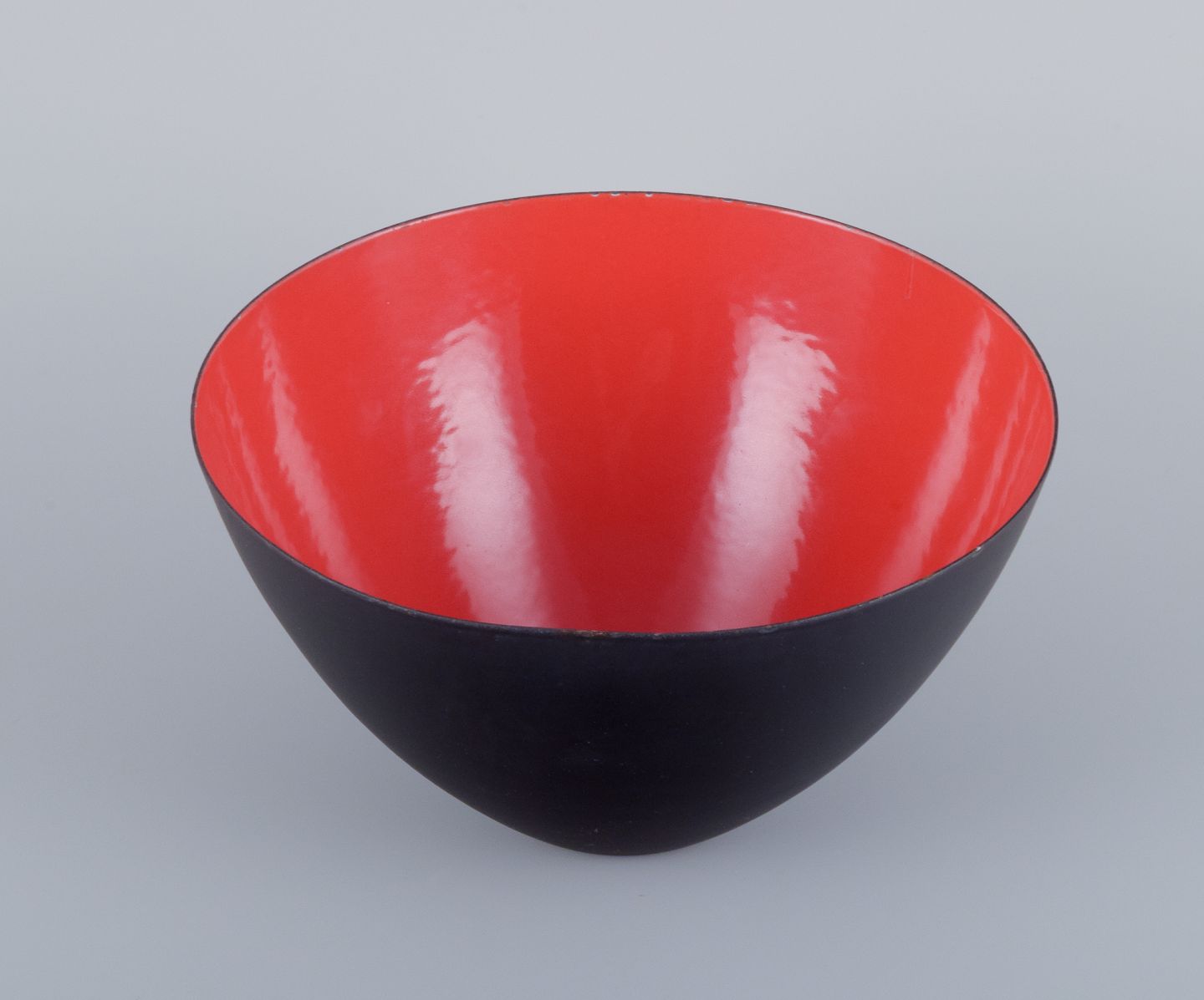 Hermann Krenchel, tre Krenit metalskåle med emalje i orange.