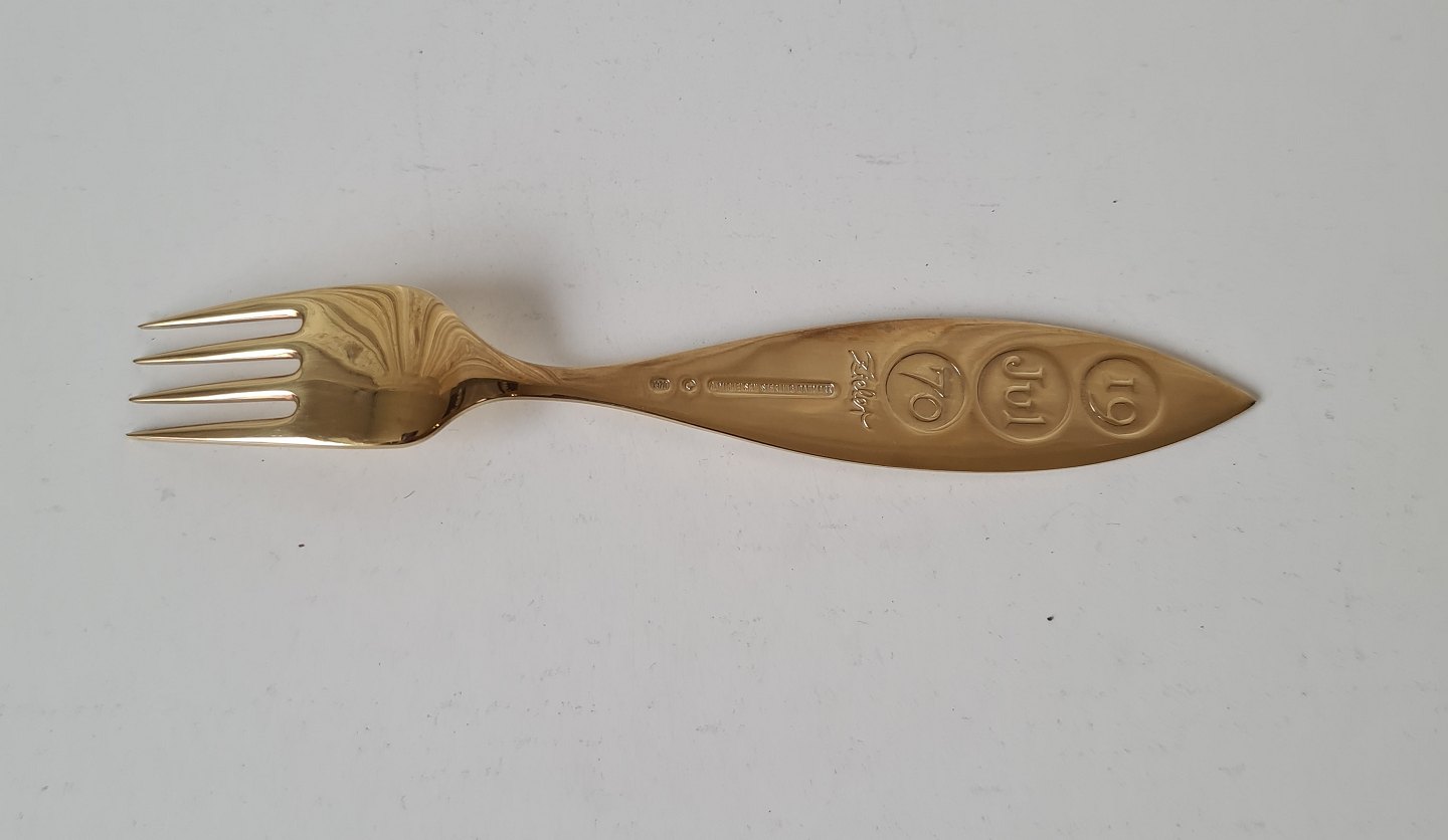A.Michelsen julegaffel i forgyldt sterlingsølv med emalje 1970