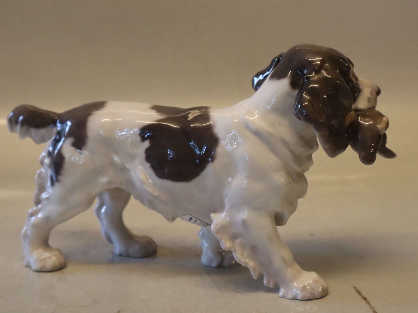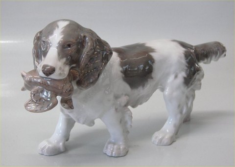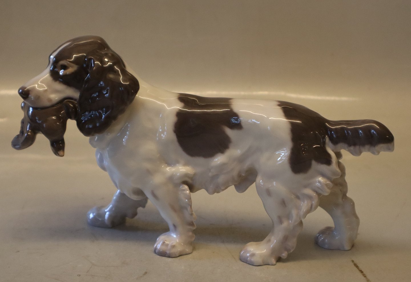 Bing & Grøndahl hund 2061 Spaniel med fugl 25 cm Lauritz Jensen arbejde både for Royal Copenhagen, Dahl Jensen og Bing & Groendahl Jagthund
